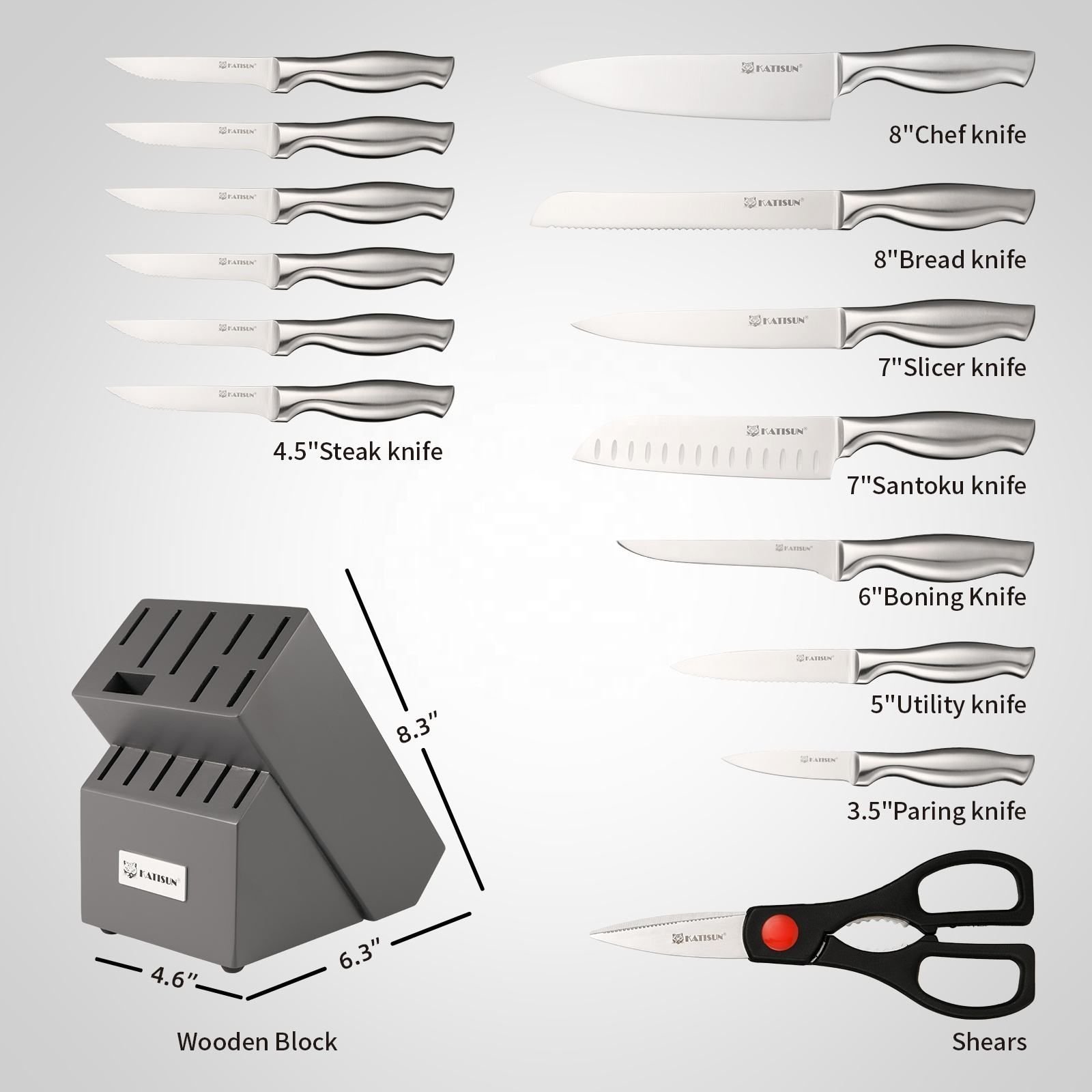15 Pieces High Quality Chef Knife Set with Wooden Block, Non-slip Hollow Handle for Kitchen Shears