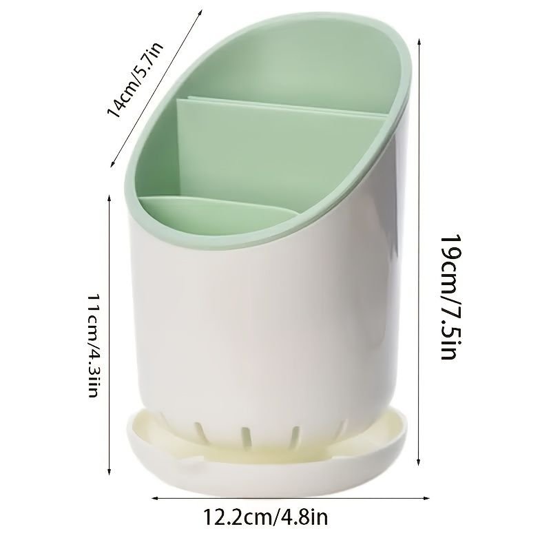 1pc Kitchen Utensil Holders Cutlery Drying Rack For Counter With Catch Pan And Drain Hole; Anti Tilting Kitchen Silverware Drainer Basket Sink