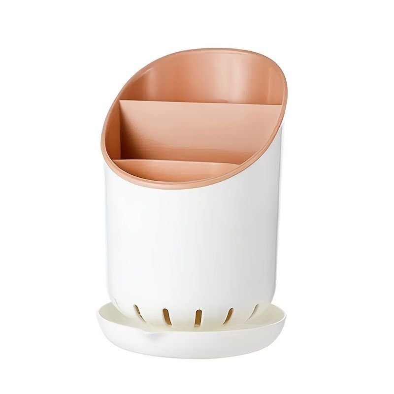 Home > 1pc Kitchen Utensil Holders Cutlery Drying Rack For Counter With Catch Pan And Drain Hole; Anti Tilting Kitchen Silverware Drainer Basket Sink