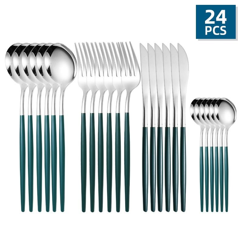 24pcs/Set Stainless Steel Cutlery; Portuguese Cutlery Spoon; Western Cutlery Set