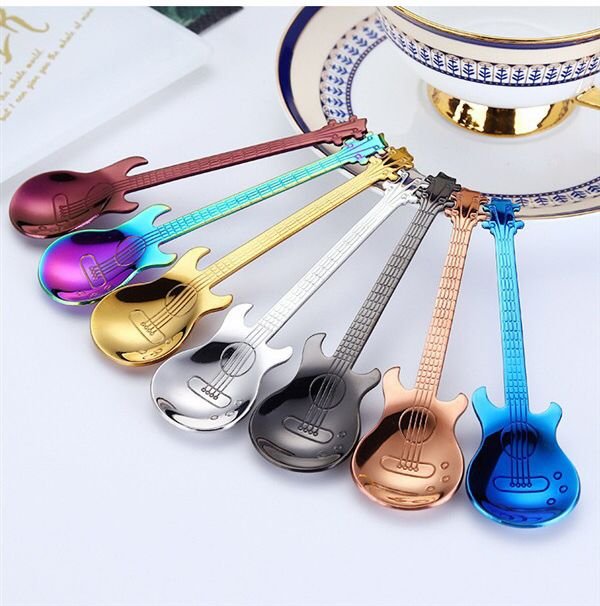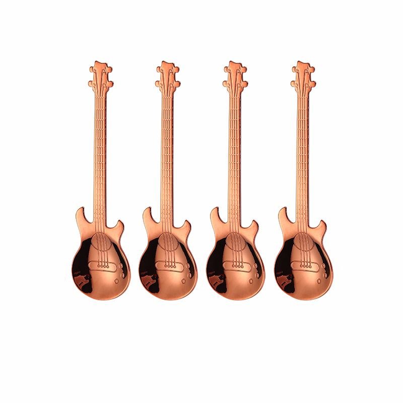 Home > 4Pcs Metal Guitar Spoon Flatware Set 18/10 Stainless Steel Guitar Spoons Creative Milk Coffee Spoon Ice Cream Candy Teaspoon