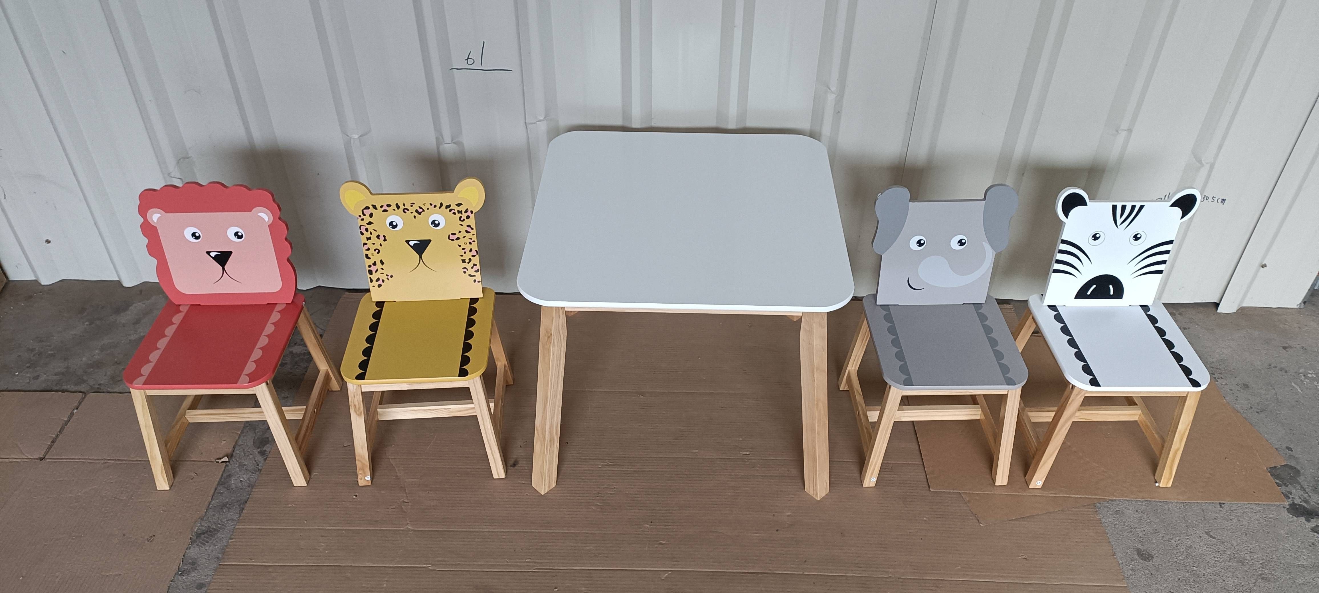 Home > 5 Piece Kiddy Table and Chair Set , Kids Wood Table with 4 Chairs Set Cartoon Animals (bigger table) (3-8 years old)