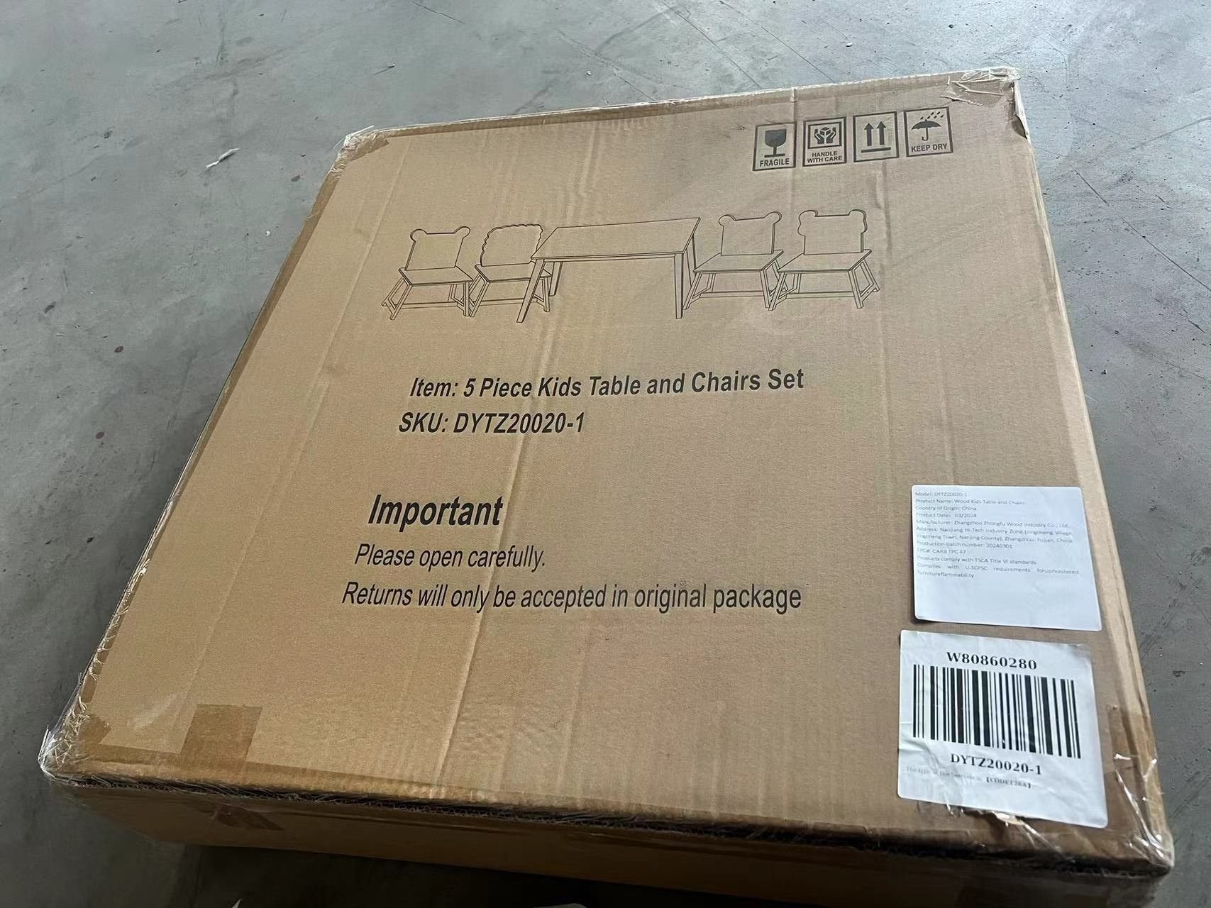 Product size - Table:23.6'' W x 23.6'' D x 19.7'' H ,Chair: 11.9'' W x 12.1'' D x 21.5'' H ,weight: 13.5KG/ 29.76lb