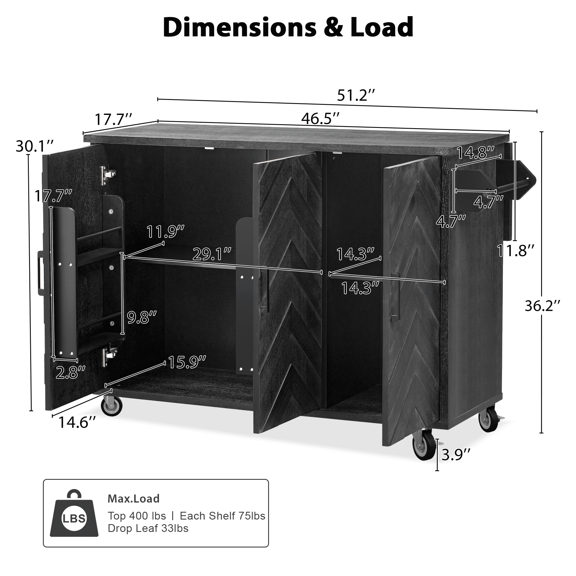 Drop Leaf Weight Capacity: 33 LBS
