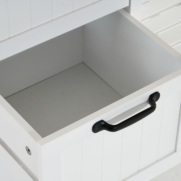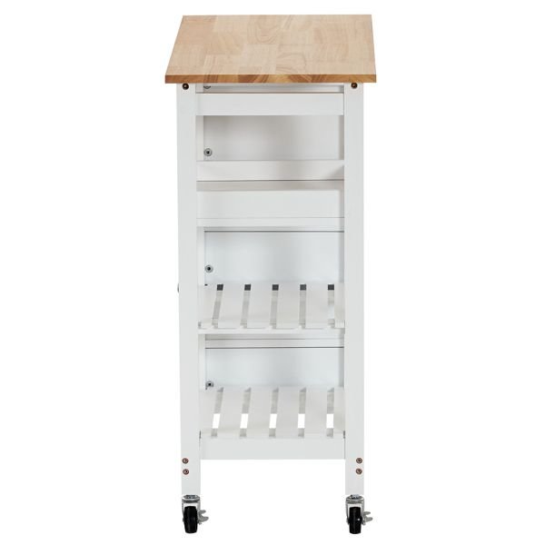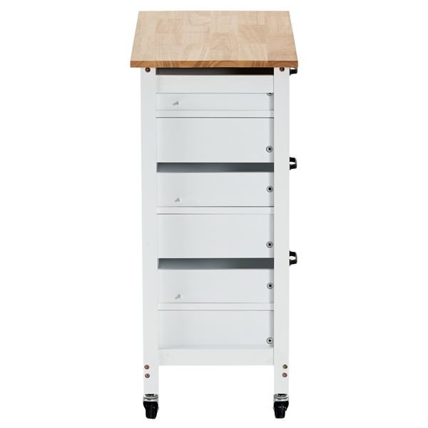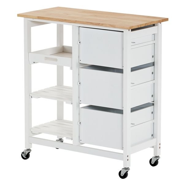 Here is our FCH 76*37*84cm Three Drawers Three Layers Black Handle Rubber Wood Log Color Table White Spray Paint Dining Car. If you want to have a simple and practical dining car; this will be your best choice!
