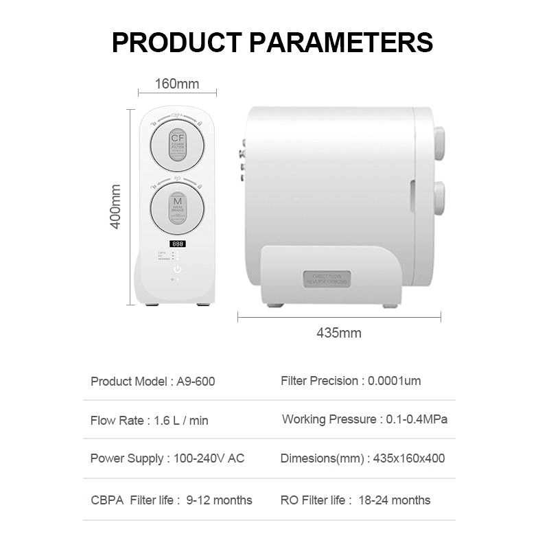 SKU: 28681873 RO filter, mesa pure water machine LCD shows reverse osmosis pure water machine pressure 0.4 Mpa flow 1.6L / min purified water 600 GPD household pure water machine, double switch faucet tankless reverse osmosis filtration system white