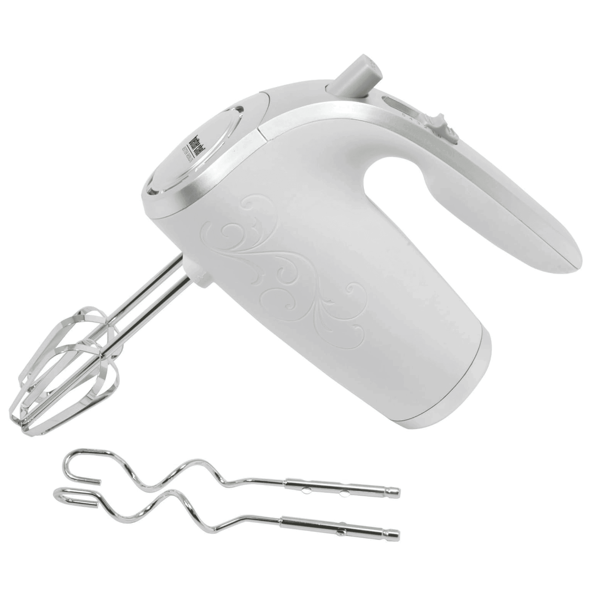 The Better Chef 150-watt hand mixer with stylish silver accents offers versatility with its 5-speed settings, allowing you to mix, blend, whip, and more with ease. Its powerful 150W motor is capable of handling most mixing tasks efficiently. Cleanup is simplified thanks to the stainless steel beaters and dough hooks, which are easy to clean. Additionally, the mixer is designed for convenience, featuring an ergonomic handle and thumb-switch speed controls that enable one-handed operation, enhancing usability in the kitchen.