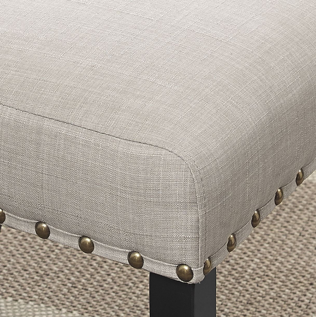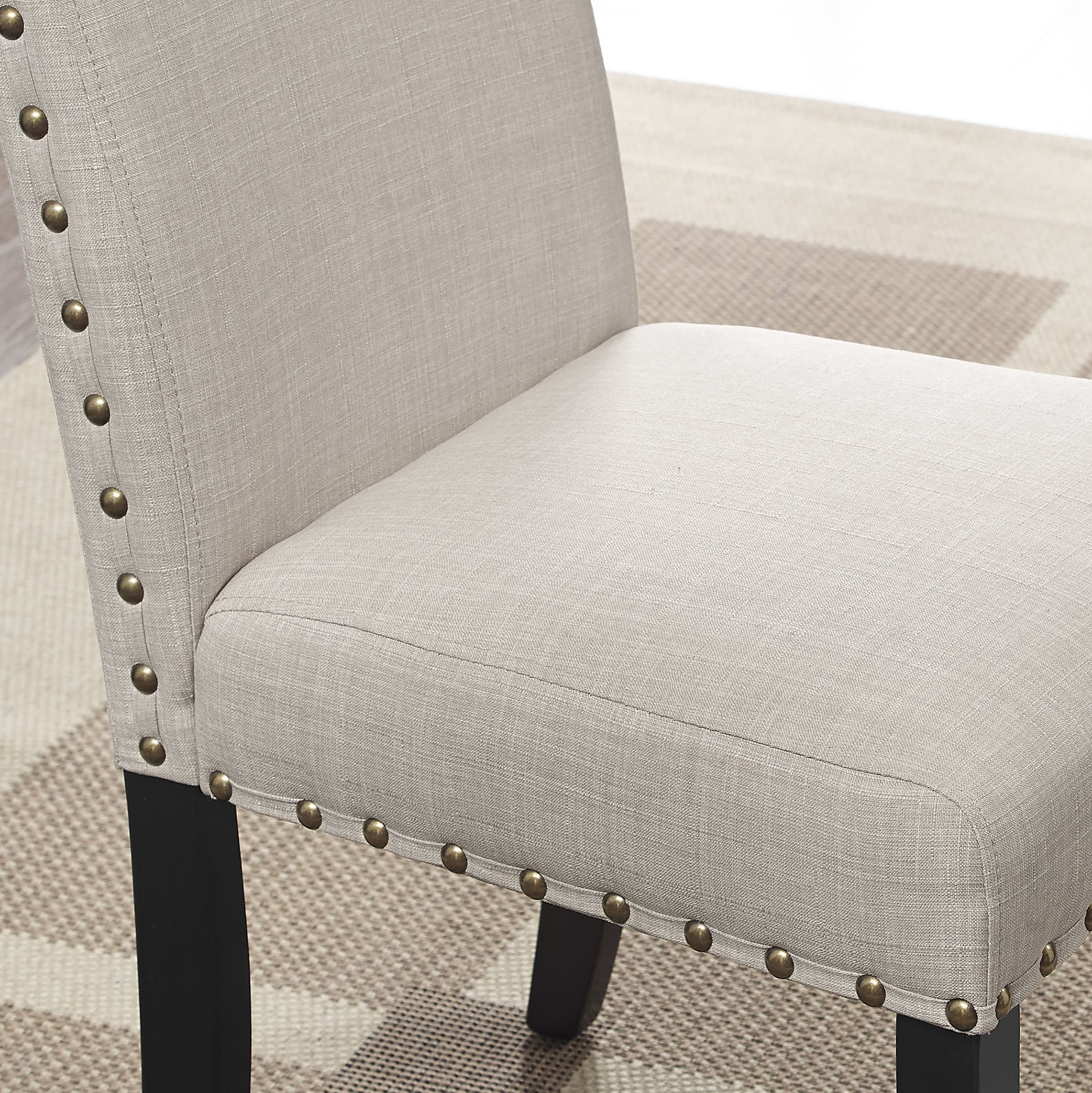 5 piece dining set includes one table and 4 chairs, highlighted with brass nailheads for on-trend flair.