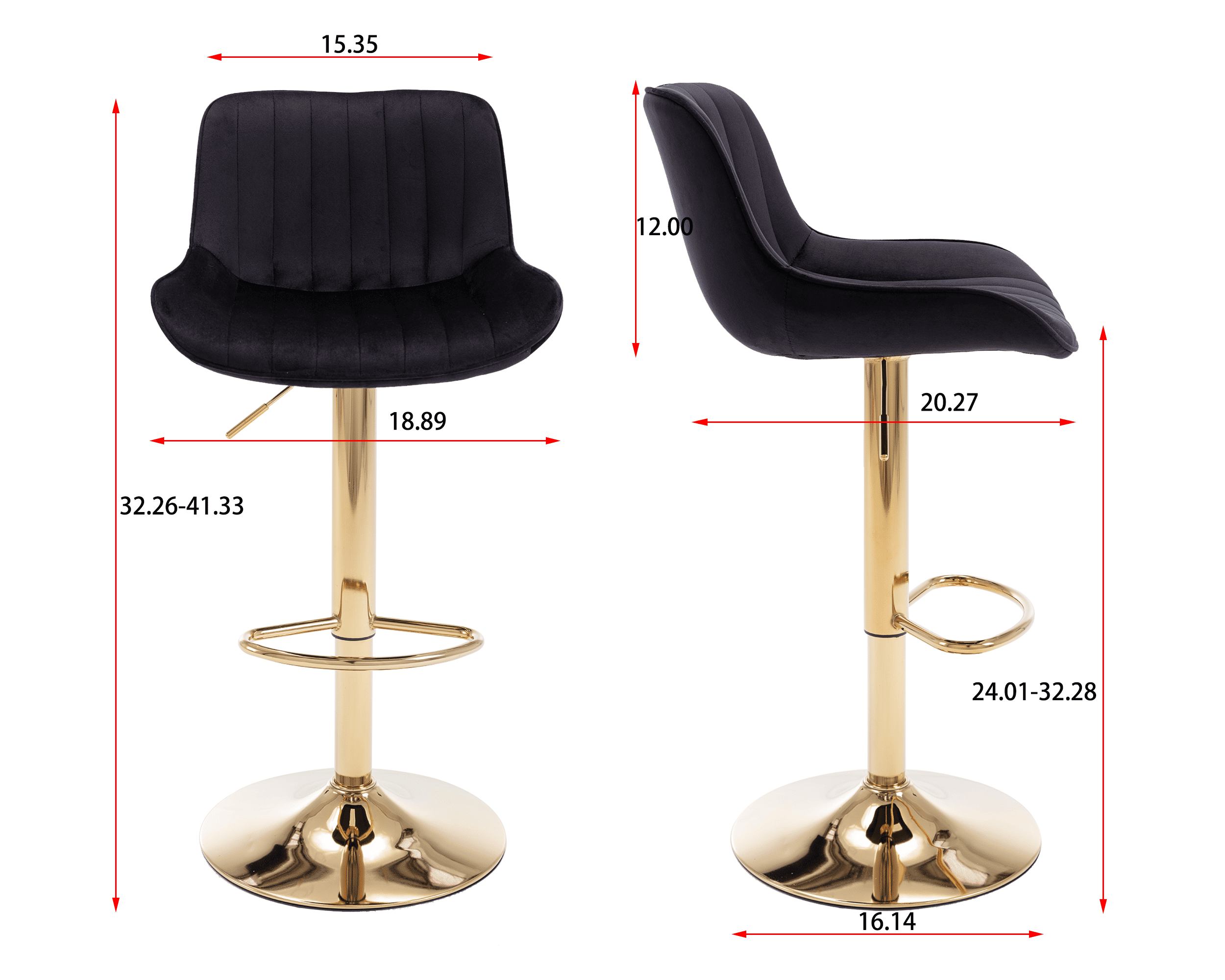 Home > Chrome Footrest and Base Swivel Height Adjustable Mechanical Lifting Velvet + Golden Leg Simple Bar Stool,Set of 2,Black