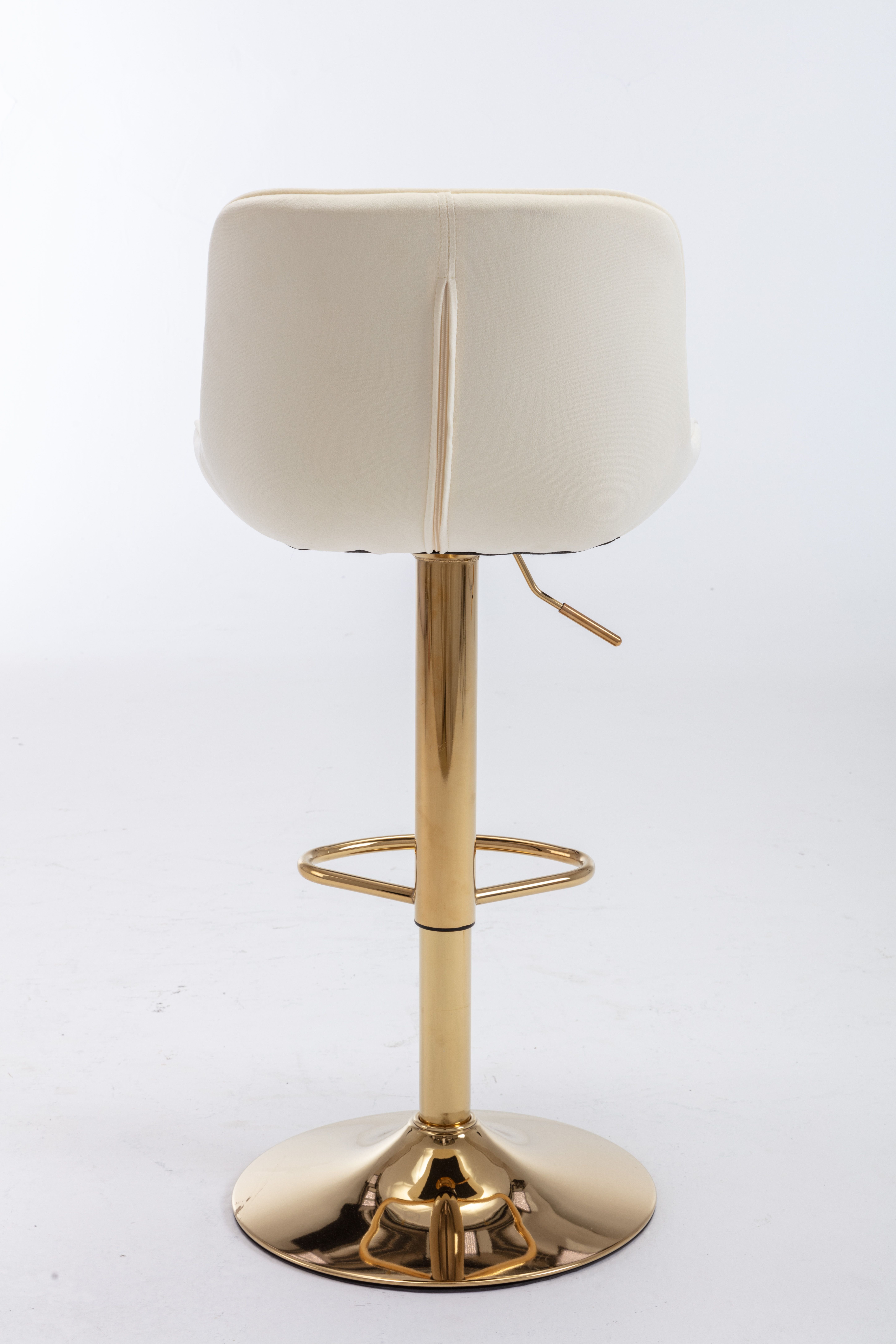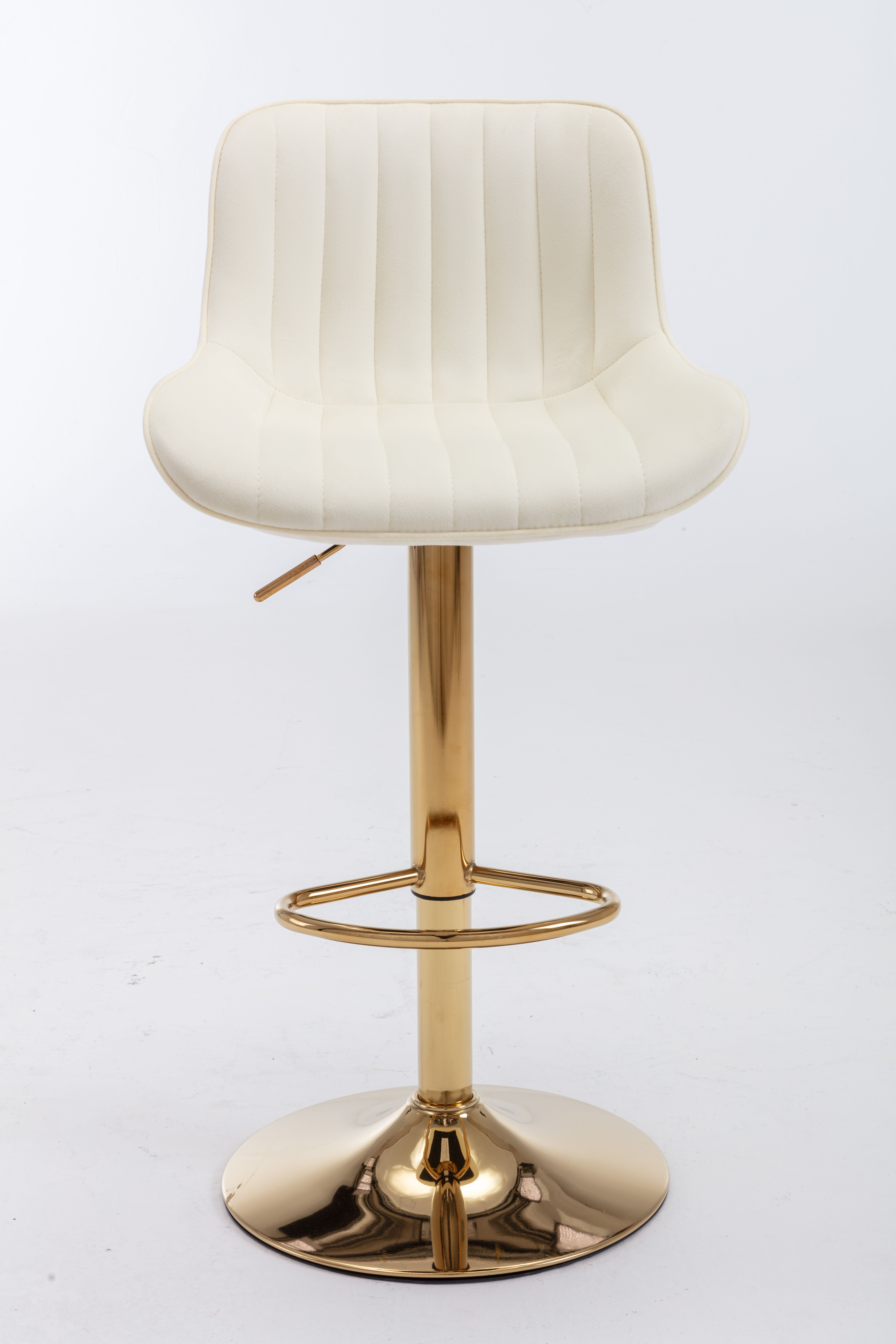 Chrome Footrest and Base Swivel Height Adjustable Mechanical Lifting Velvet + Golden Leg Simple Bar Stool,Set of 2,Ivory