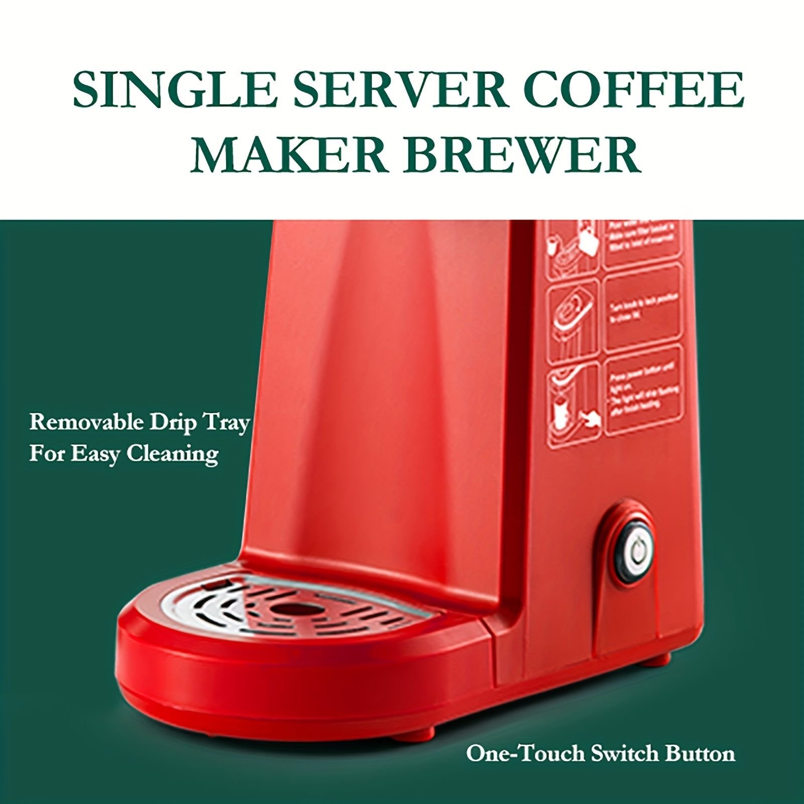 2, (ONE BUTTON ON/OFF OPERATION)800W heating element with rapid brewing technology.Our brewer with blue indicator light,also features auto shut-off preventing from overheating and keeping safe.One cup of hot brewed coffee will ready for you just within 3mins.Also can use it as a water boiler to get hot water.