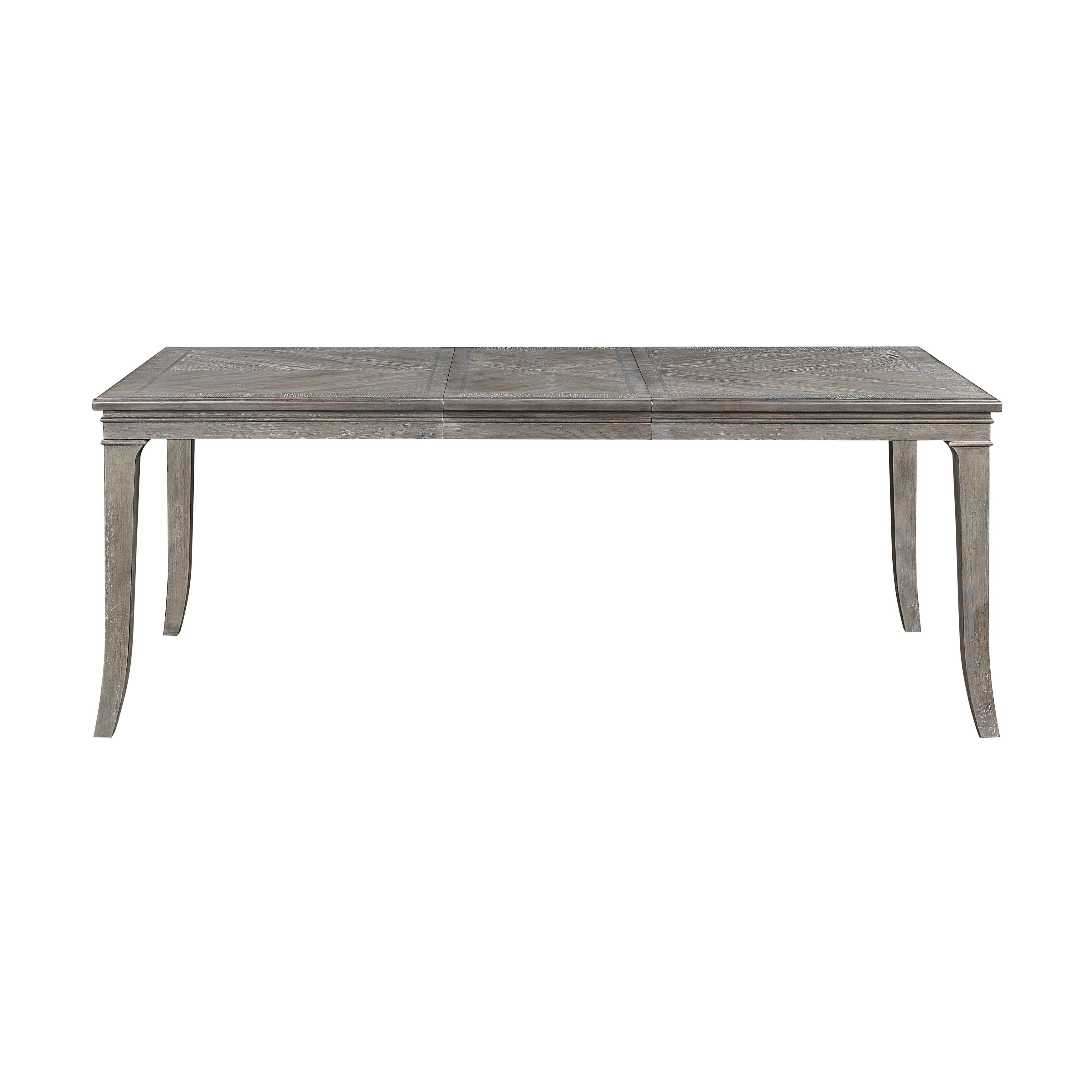 Traditional elements are paired in the design of the Garner Collection, the result - an elegant arrangement for your home's casual dining room. A brown-gray finish highlights the distinct grain of the collection's oak veneer, its hue creating a versatile pallet for your tabletop décor. Gray chenille fabric upholstery covers the seats and backs of the classic wood-framed side chairs. PRODUCT DIMENSIONS: TABLE: 40" x 60" - 78" x 30"HApron to floor: 26.5"Length of leaf: 18" x 1Distance between legs from the shorter side: 38.5"Distance between legs from the longer side: 76.5"CHAIR: 20" x 25.5" x 41"HSeat Width: 20"Seat Depth: 19"Seat Height: 20"Listing Includes: 5pc Dining Set (Dinng Table and 4 Chairs) Only.Simple Assembly Require.
