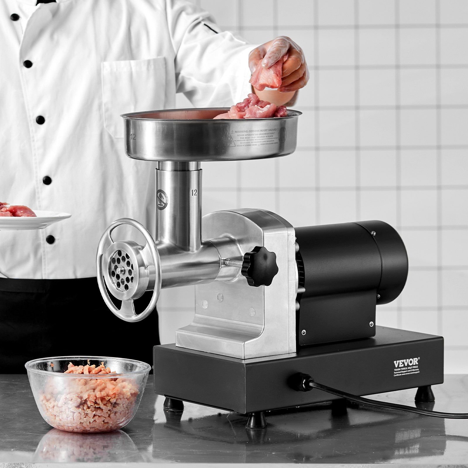 1.Fast Meat Grinding: The commercial countertop meat grinder, mouth size 12#, features a highly efficient 550W pure copper motor capable of grinding 9 lbs of meat per minute. It can operate continuously without interruption, making it ideal for large-scale commercial meat grinding needs. Avoid letting the grinder idle for too long as it may damage the motor. Remember to promptly turn off the power when not in use.