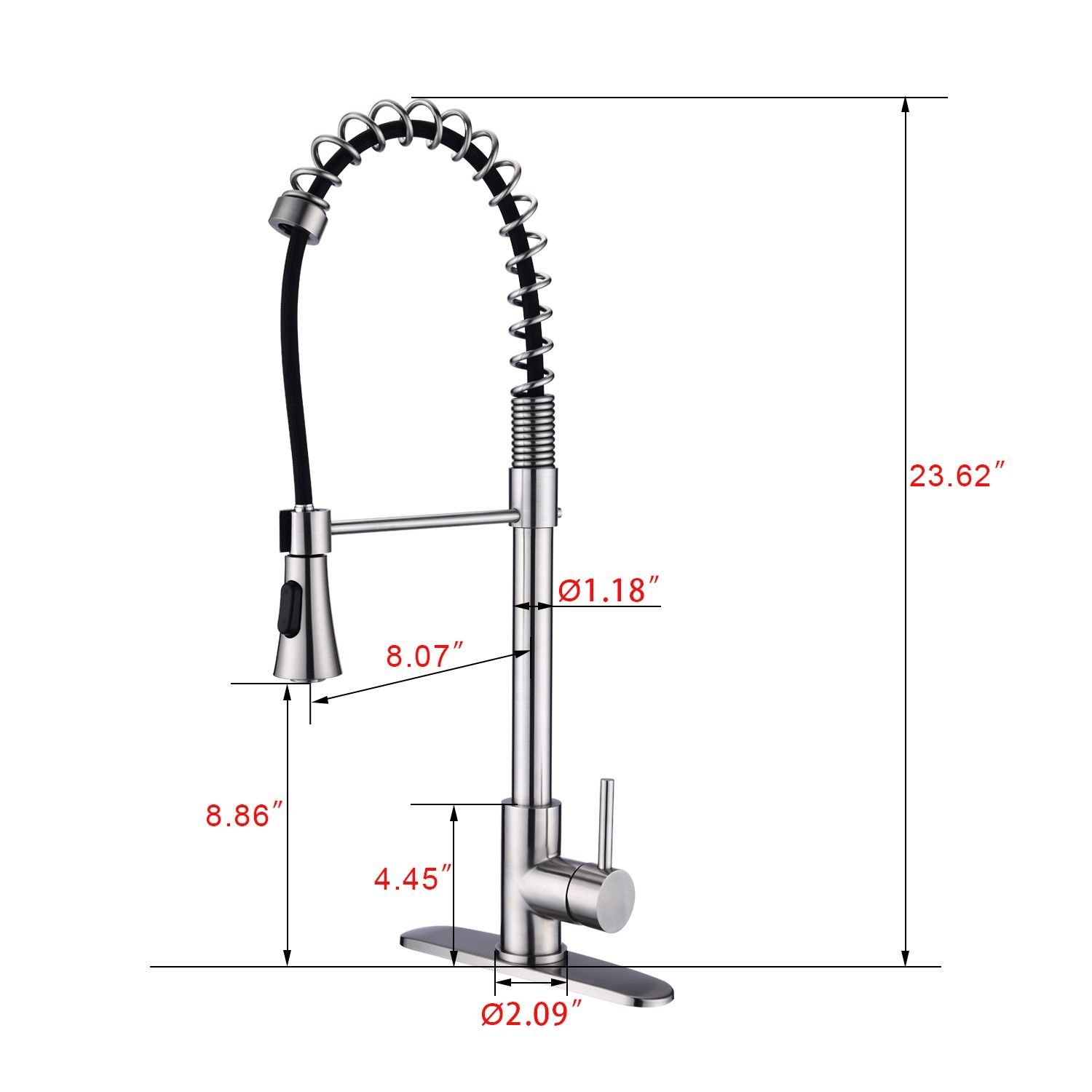 Description:This spring pull down faucet is constructed of stainless steel materials to meet all of your kitchen's needs. Stainless steel construction provides durability, making this product a reliable selection for a busy home. 360 Degree Swivel Pull Down Sprayer provide a full range of motion so you can wash your dishes from any angle .The sleek design also helps to bring a professional look to your kitchen. Its premium finish complements the look of your space and pairs well with any countertop.