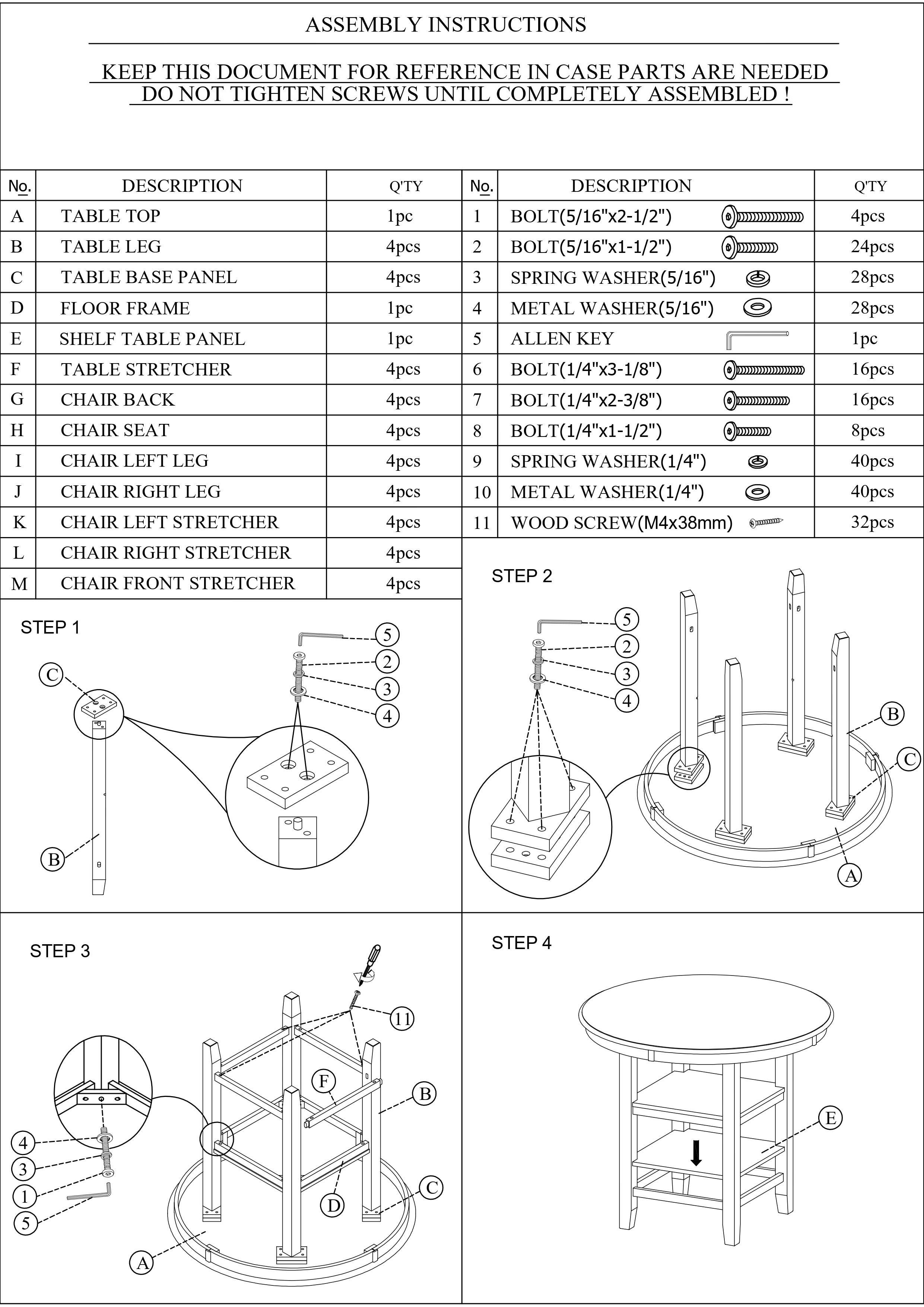 Product Description:Enjoy your meals with this 5-piece Counter Height Dining set, which comes with 4 matching Dining Chairs, featuring nicely padded seats, an attractive curve-back chair design, and a footstool bar. The Dining Table features a gracefully rounded table oak veneer finish with decorative and functional shelves. Available in different colors.Product Features:Contemporary StyleWhite Finish, Oak VeneerRubber WoodMDF + Oak VeneerUpholstered Cushion SeatUnique BackStorage Shelves Table BottomProduct Dimension:Dining Table: 42" DIA x 36"H High Chairs - 18: x 21" x 41"H; 24" H SeatListing Include: 5pc Dining Set (Counter Height Dining Table and 4x High Chairs) Only.Simple Assembly Required.