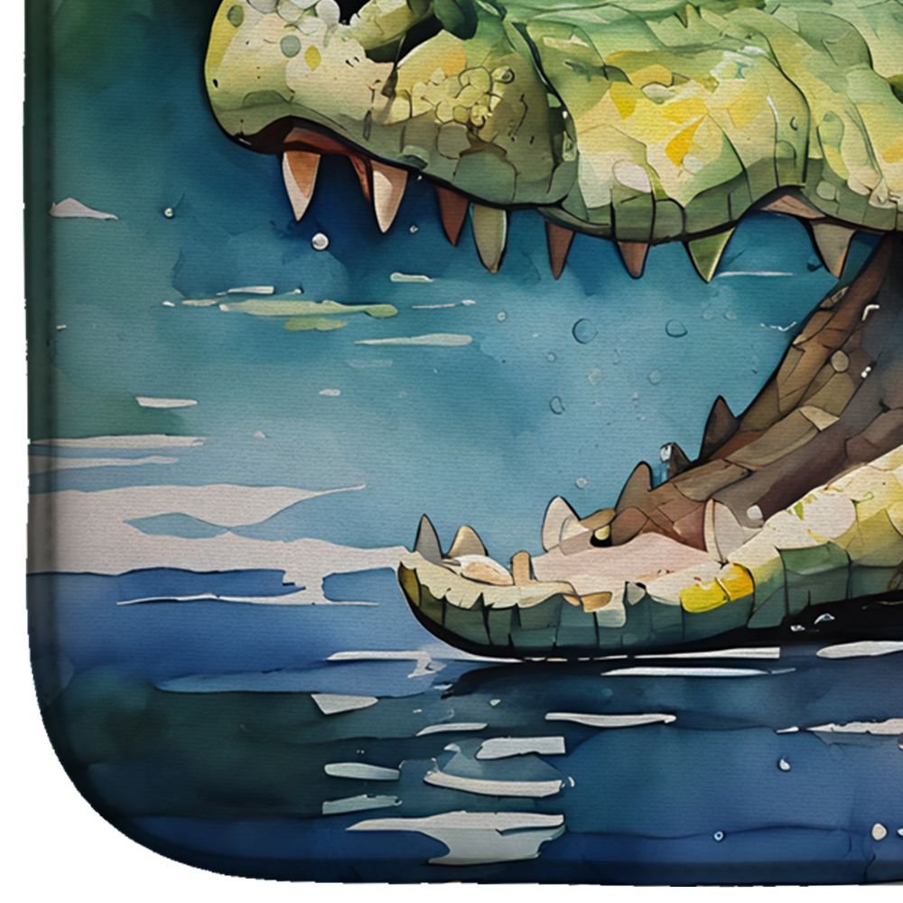Dish Drying Mat featuring breed specific Crocodile artwork. Say goodbye to messy countertops and soggy dish towels with our innovative dish drying mat. Our high-quality dish drying pad is designed to keep your countertops dry while offering a stylish and efficient solution. Whether you're air drying dishes, glasses, stemware, silverware, pots, pans, bottles, or even fruits and vegetables, our dish mat is the perfect choice. The 14 inches x 22 inches size fits most counters and dish drying racks, and the non-slip design ensures stability. Made with water-absorbent polyester and a polyurethane foam insert, our dish drying mat is not only functional but also durable. It's machine washable and printed in the USA for long-lasting use. The beautiful artwork adds flair to your kitchen decor, making it a perfect housewarming gift or present for any occasion. Upgrade your kitchen experience with our absorbent and versatile dish drying mat.