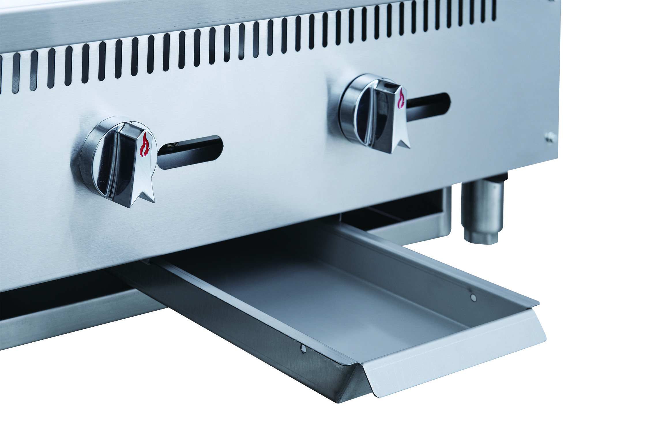Crafted entirely from stainless steel, this griddle boasts a powerfulcapacity of 30,000 BTU per 'U' burner. Its modern design and sleekappearance make it a perfect fit for even the most demanding kitchens,offering both form and function at an affordable price.