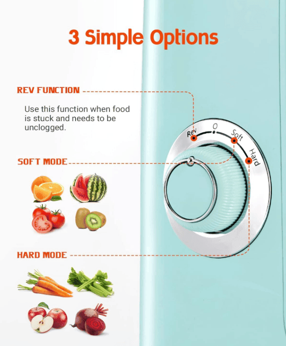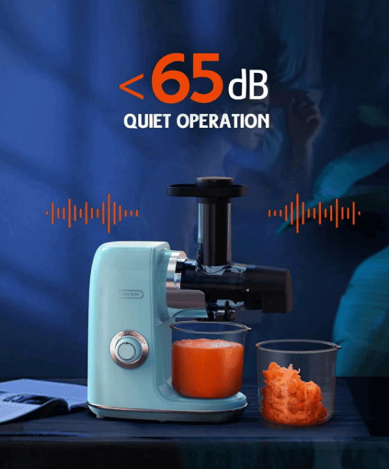 [Whispers-Quiet Operation and Dual Speed Control] -This slow chewing juice machine runs at a mild speed of 80 RPM, enjoying serenity and minimizing the oxidation of fresh juice. Dual-speed control ("soft" and "hard" modes) to ensure a quiet juicing experience.