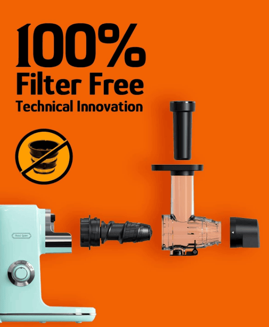 [Easy to clean, no filter] -farewell to the trouble of complex filters!Hazel Quinn The retro cold press juicer has introduced a revolutionary filter-free technological innovation. Cleaning is easy-Save you time and effort by simply flushing the parts. effortlessly intoxicated in the spotless machine.