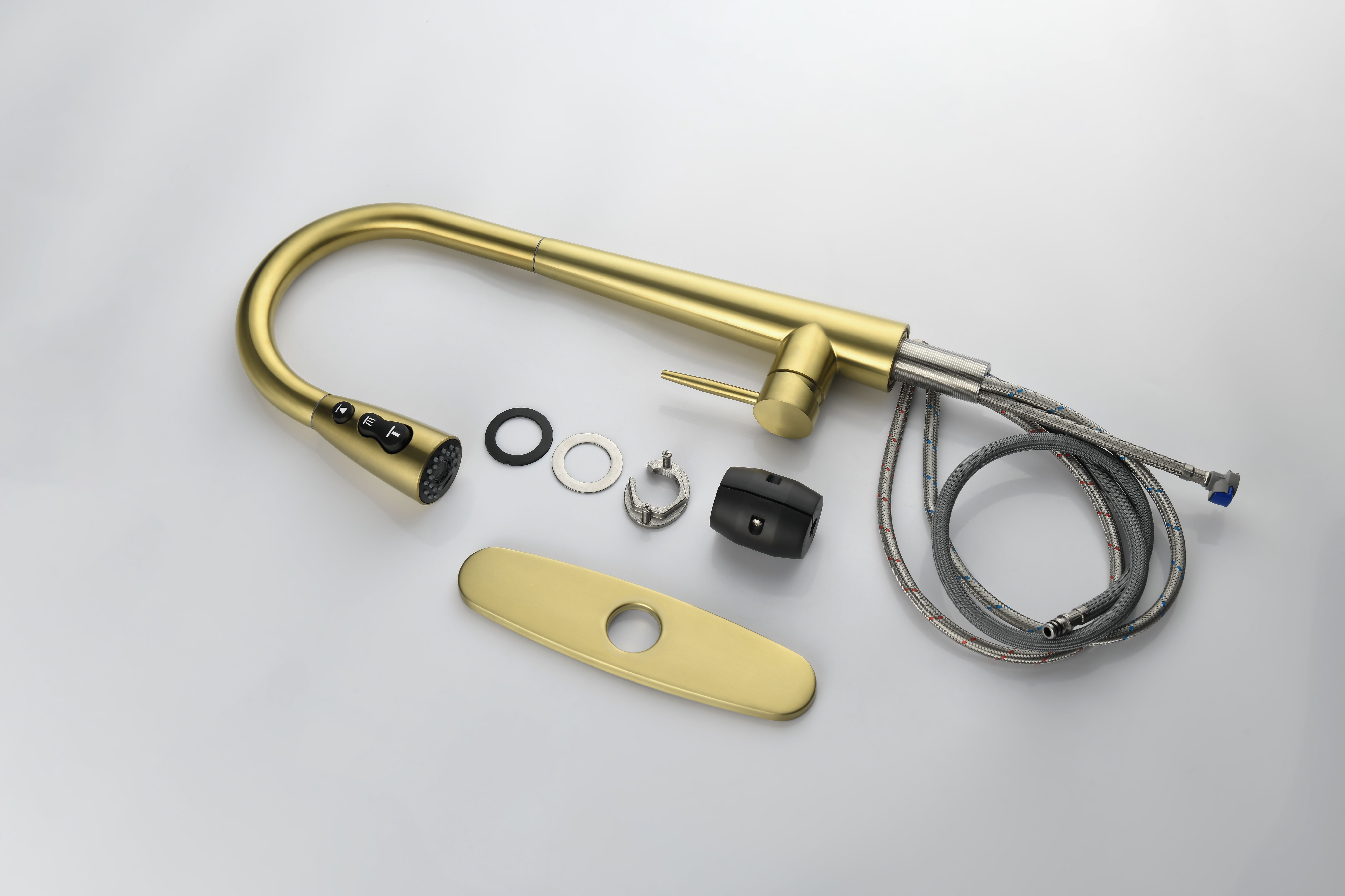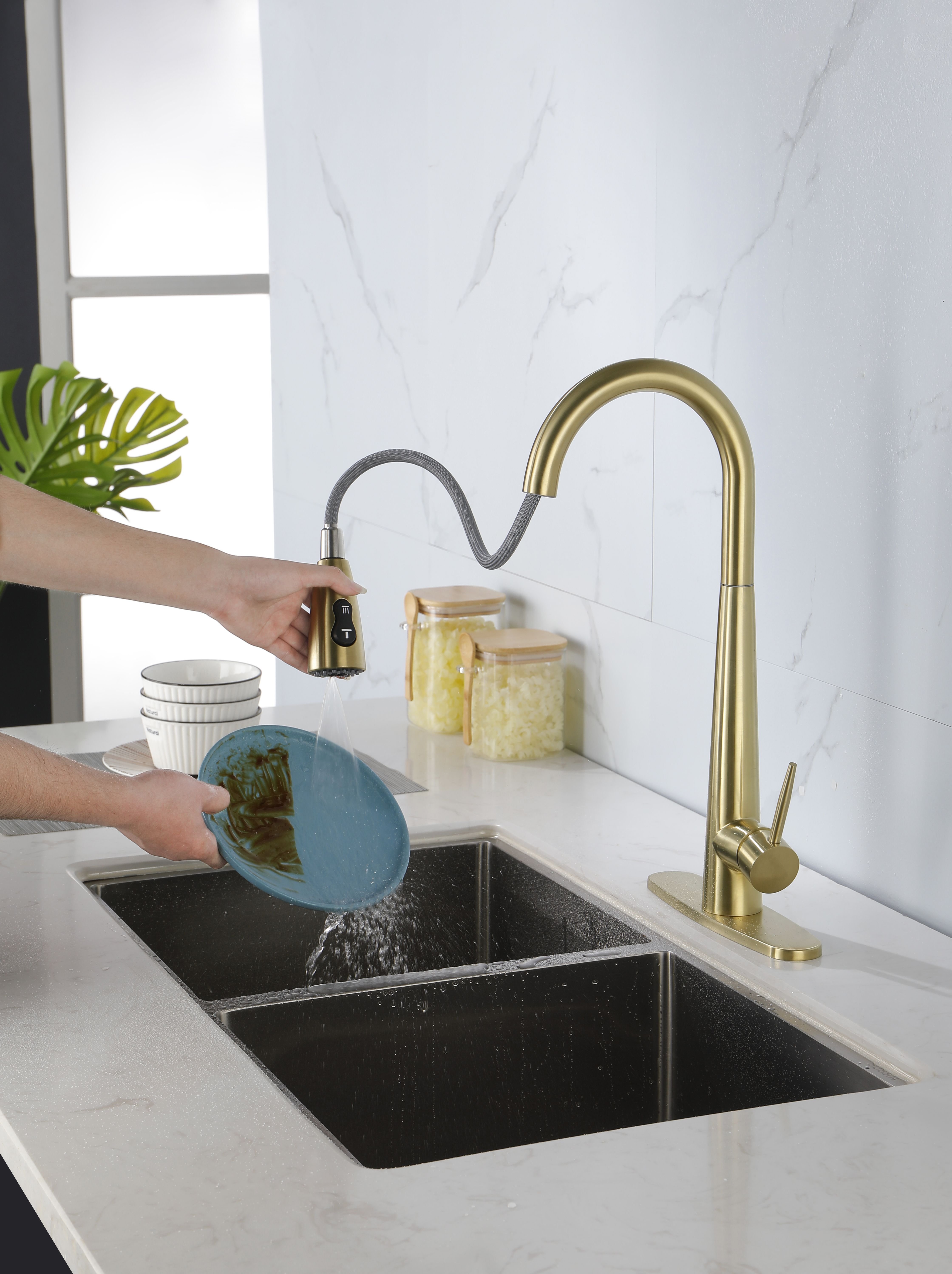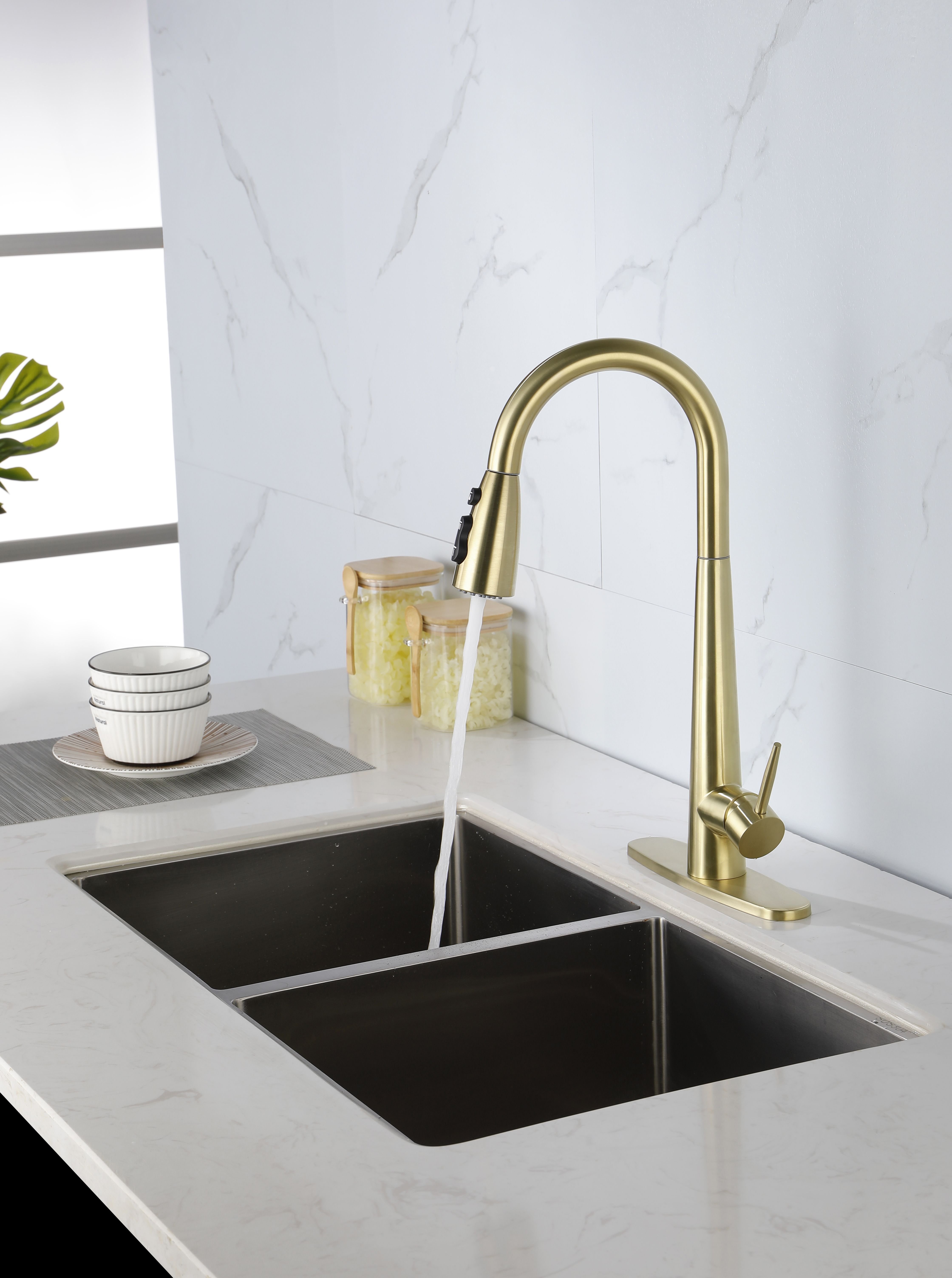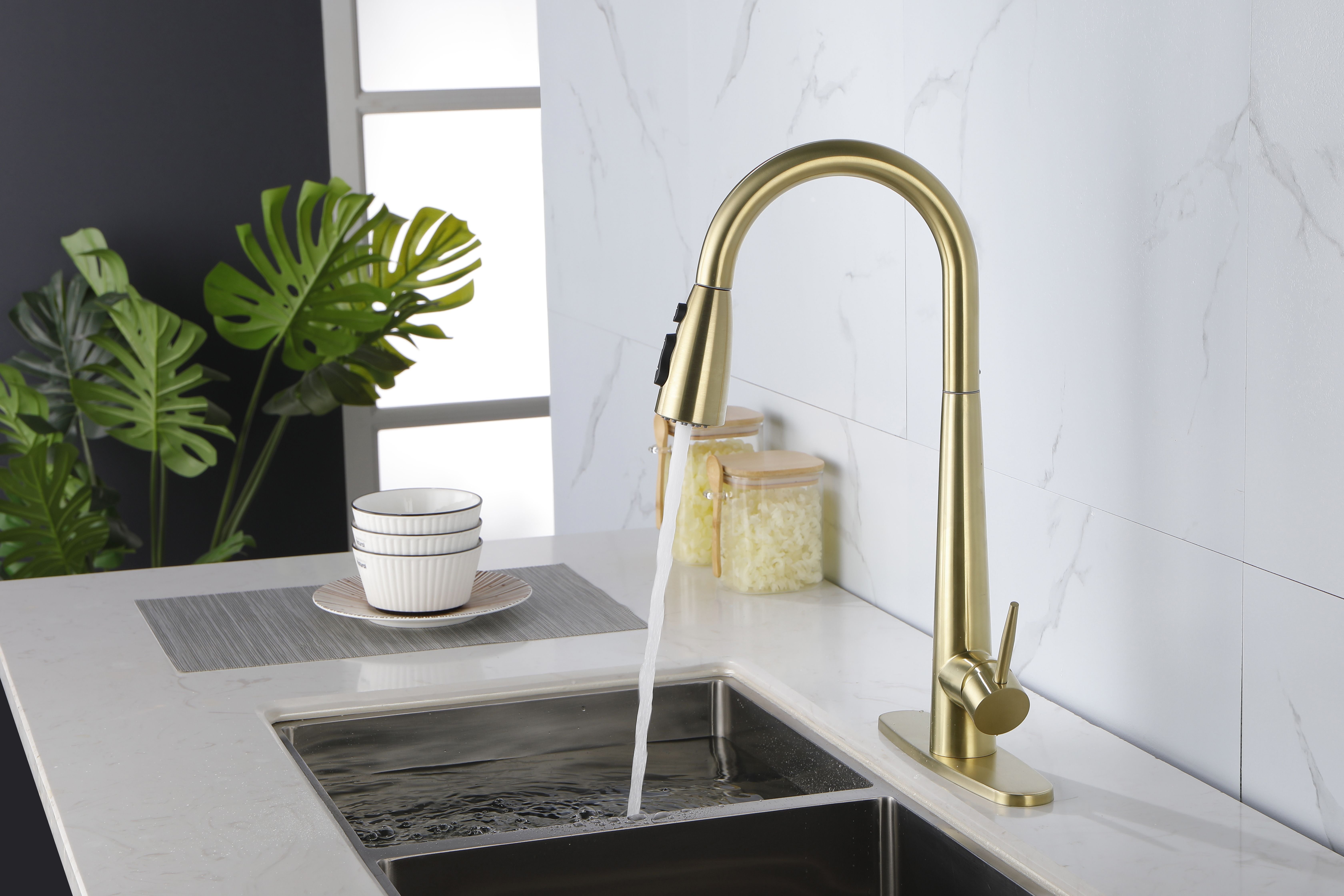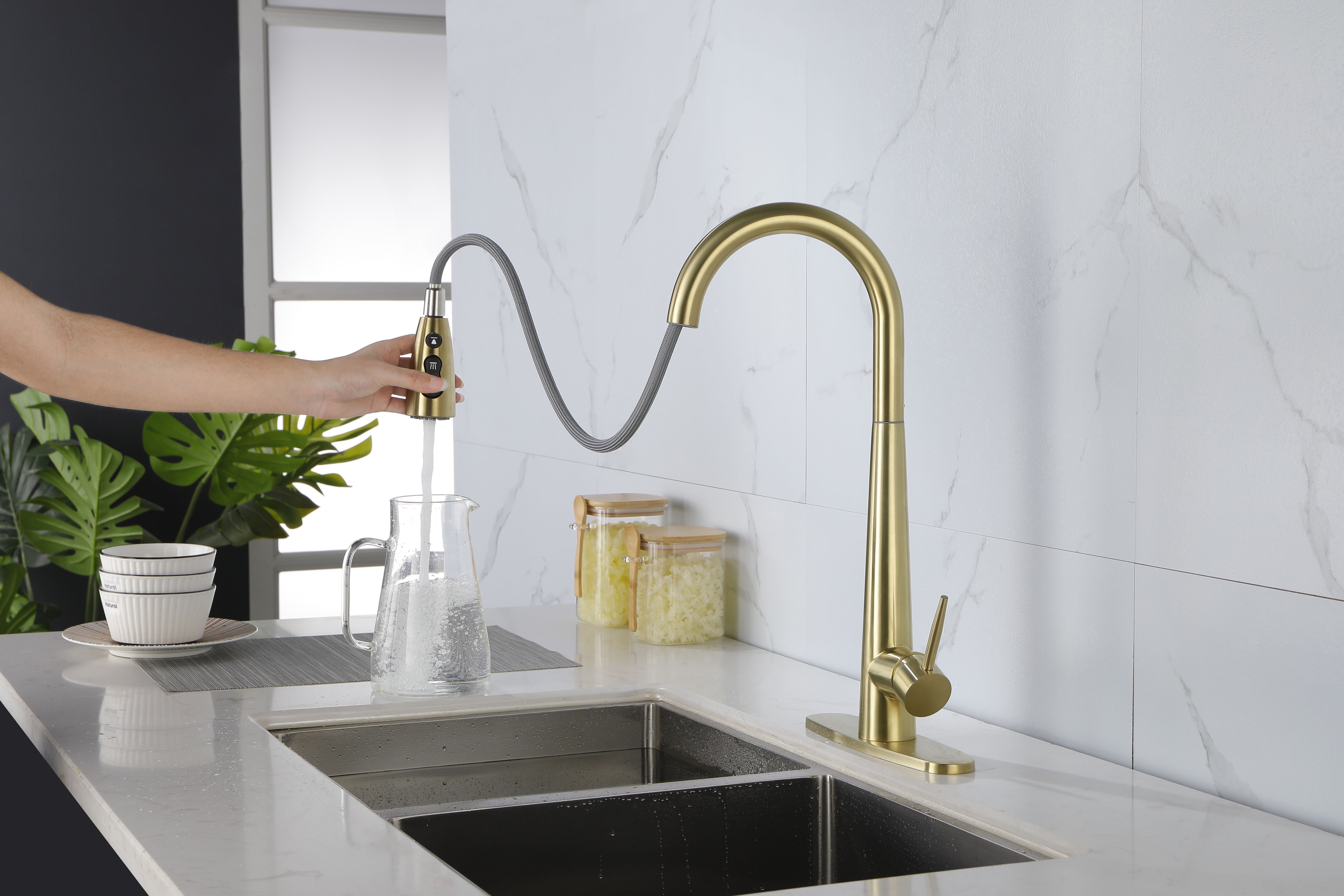 Home > Gold Kitchen Faucets with Pull Down Sprayer, Kitchen Sink Faucet with Pull Out Sprayer, Fingerprint Resistant, Single Hole Deck Mount