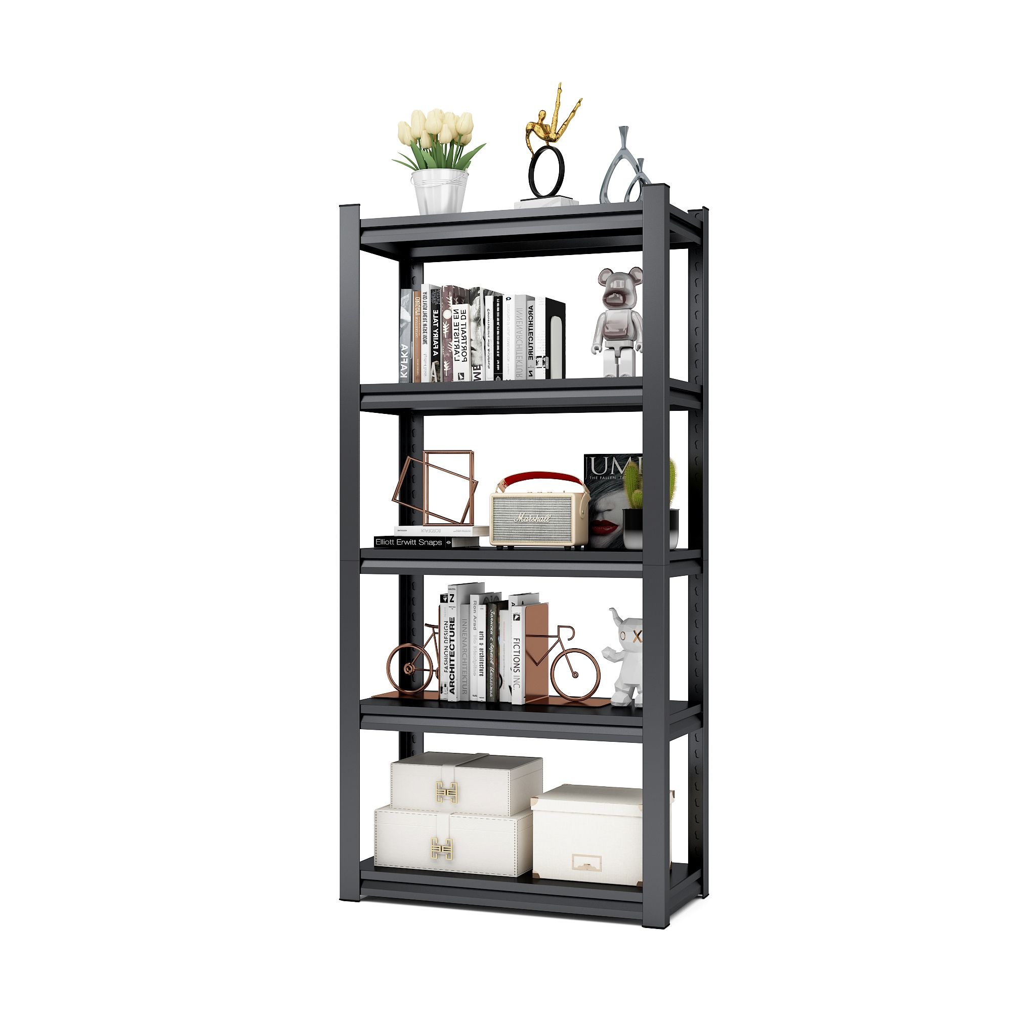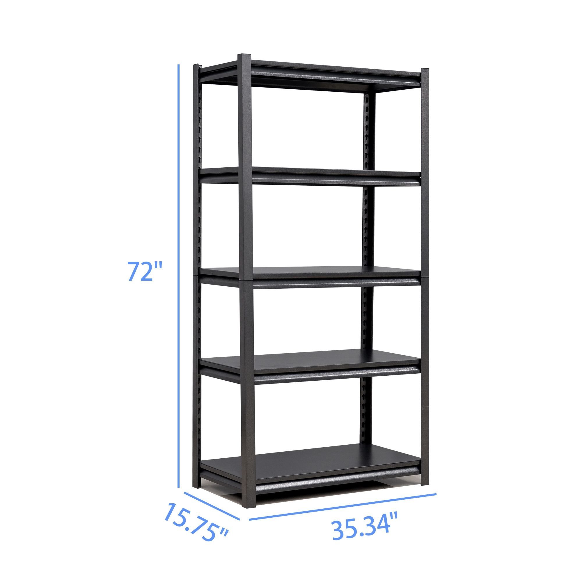 [Multiple Usage]Store heavy equipment or supplies with this heavy-duty five-shelf boltless shelving unit. Designed to meet the needs of  kitchen, living room, warehouse, office, commercial exhibition, supermarket or garage or industrial settings, this shelving unit has an outstanding weight capacity of 2500 lb. when the weight is evenly distributed across all the shelves.The garage shelving units and storage maximize the space of kitchen, living room, warehouse, office, commercial exhibition, supermarket or garage.