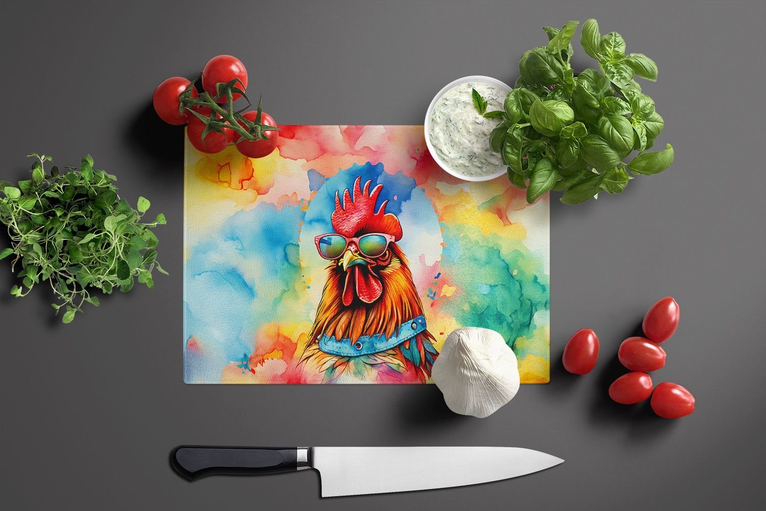 Hippie Animal Red Rooster Glass Cutting Board Decorative Tempered Glass Kitchen Cutting and Serving Board Large Size Chopping Board