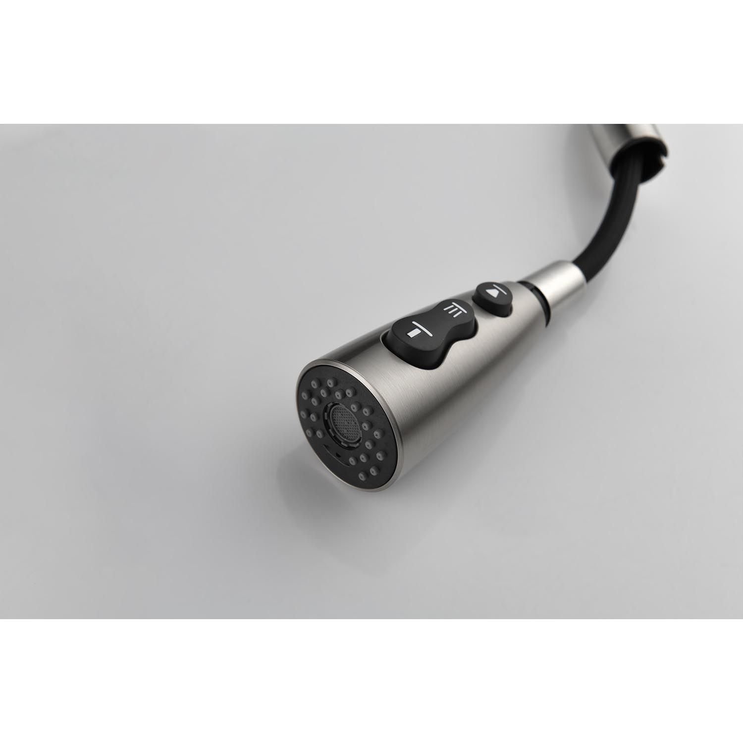 The pull-out spray head is designed to fit in a variety of sinks, and the high-arc nozzle rotates 360° to make your water use easier and more convenient.