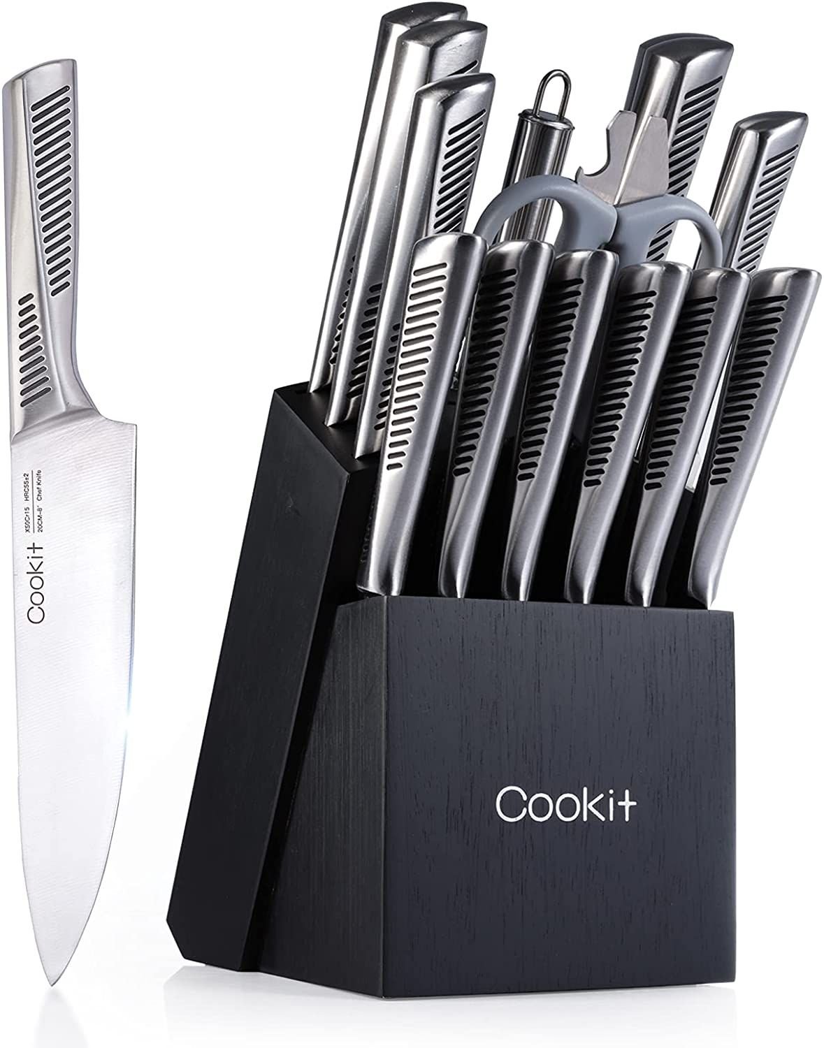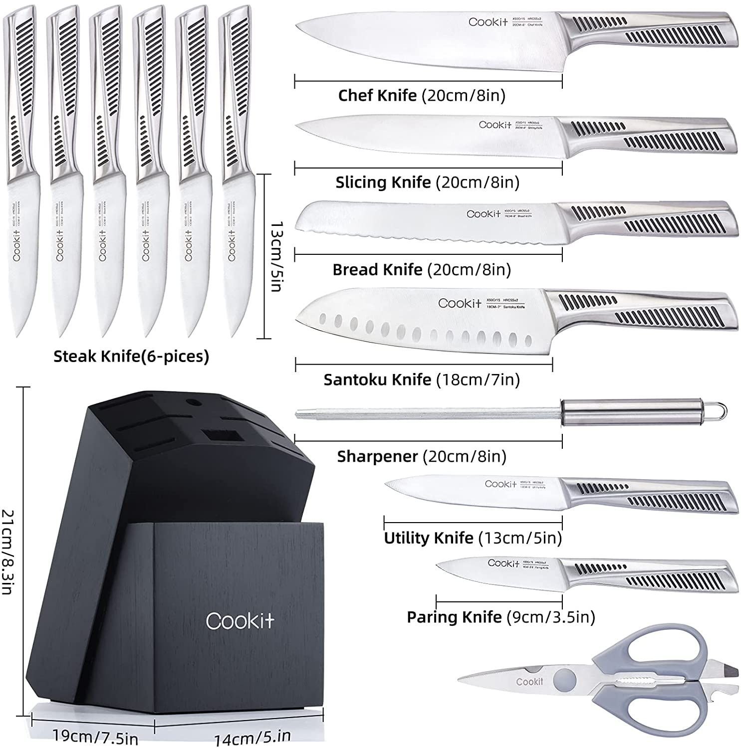 Cookit knives block set contains all tools you need in kitchen cuttingtasks,suitable for both professional and home use.