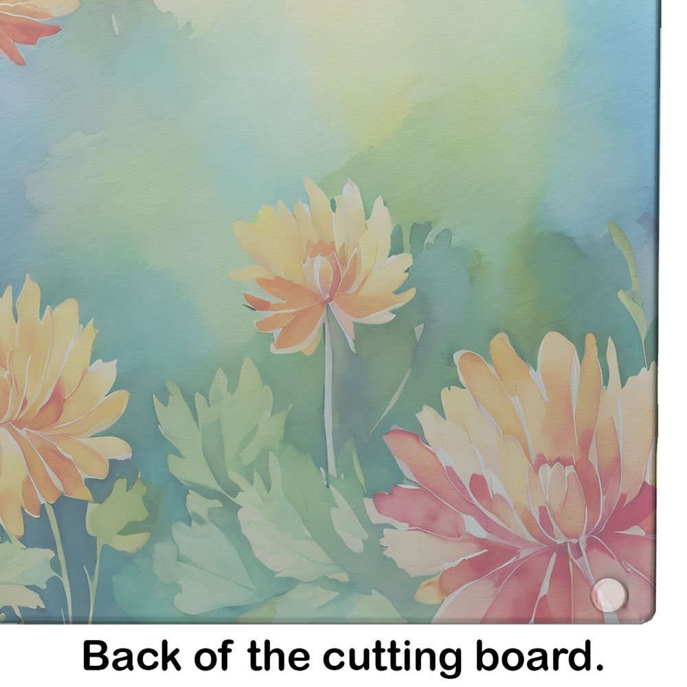 Home > NEW Chrysanthemums in Watercolor Glass Cutting Board Decorative Tempered Glass Kitchen Cutting and Serving Board Large Size Chopping Board