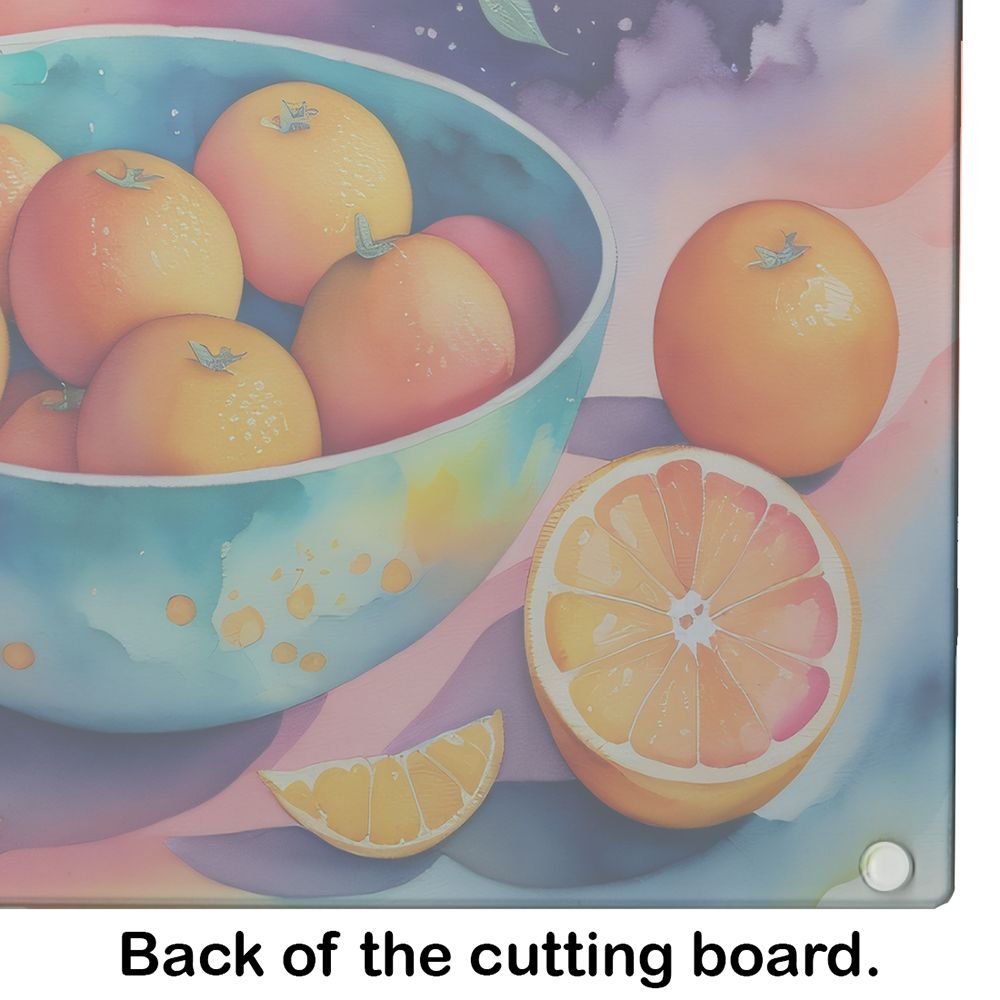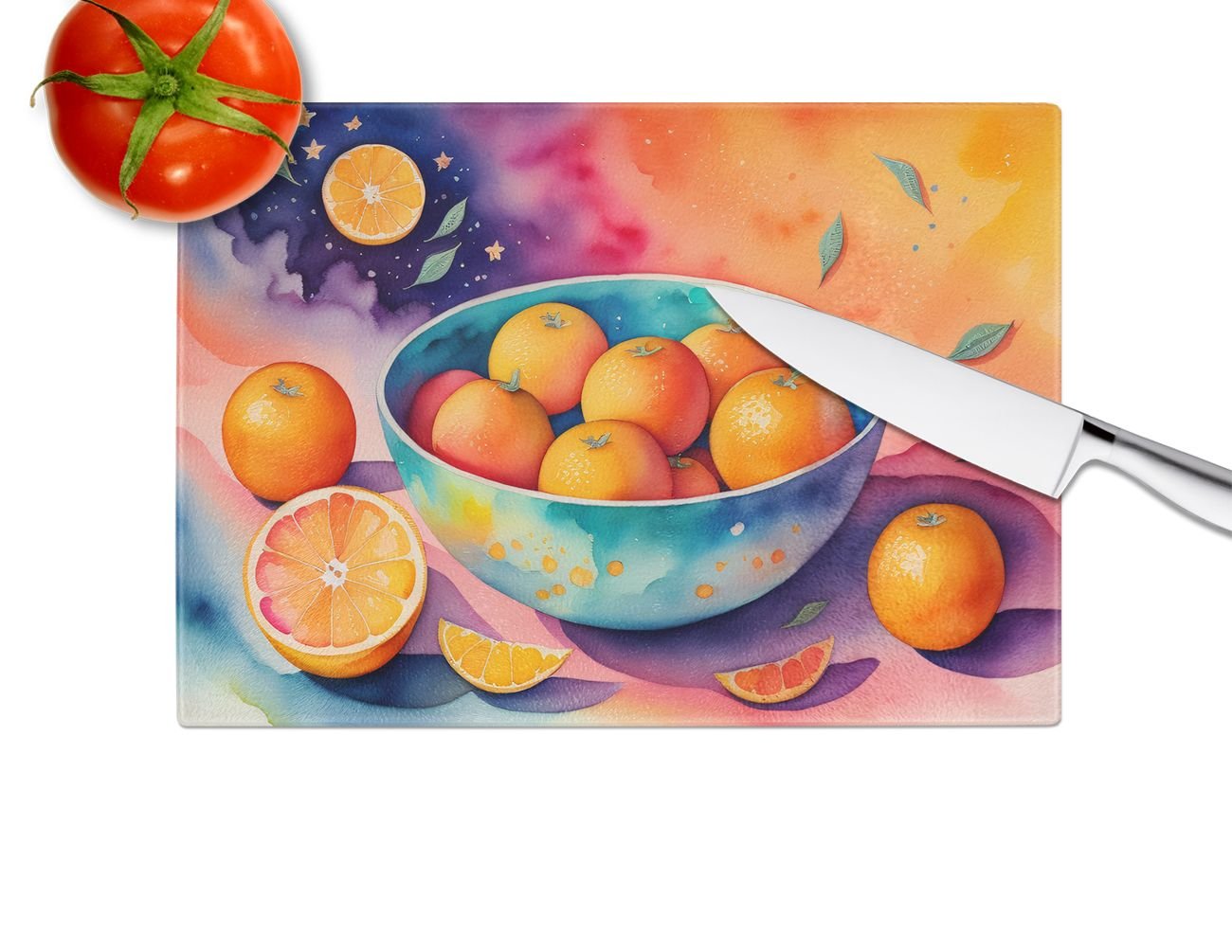 Glass Cutting Board featuring breed specific Oranges artwork. Introduce your kitchen to the vibrant, large Decorative Glass Cutting Board from Caroline's Treasures. Crafted from resilient tempered glass, this board is not only a utilitarian necessity but also a colorful art piece. With its generous dimensions of 15 inches in height and 12 inches in length, it offers ample space for all your cutting needs. Every piece showcases captivating artwork from distinguished artists, bringing an aesthetic edge to your kitchen. Beyond its attractive design, this cutting board ensures your countertop stays pristine and unscathed, owing to its heat-resistant properties. Engineered with user convenience in mind, it features non-skid feet for stability, and rounded corners for additional safety. Its robust construction renders it virtually unbreakable, guaranteeing longevity. The board comes with protective feet bumpers, maintaining its position during use. This product is recommended to be hand washed only. Proudly printed and assembled in the United States, this cutting board exemplifies superior craftsmanship. With Caroline's Treasures' Decorative Glass Cutting Board, you're investing in a blend of functionality and artistic flair.