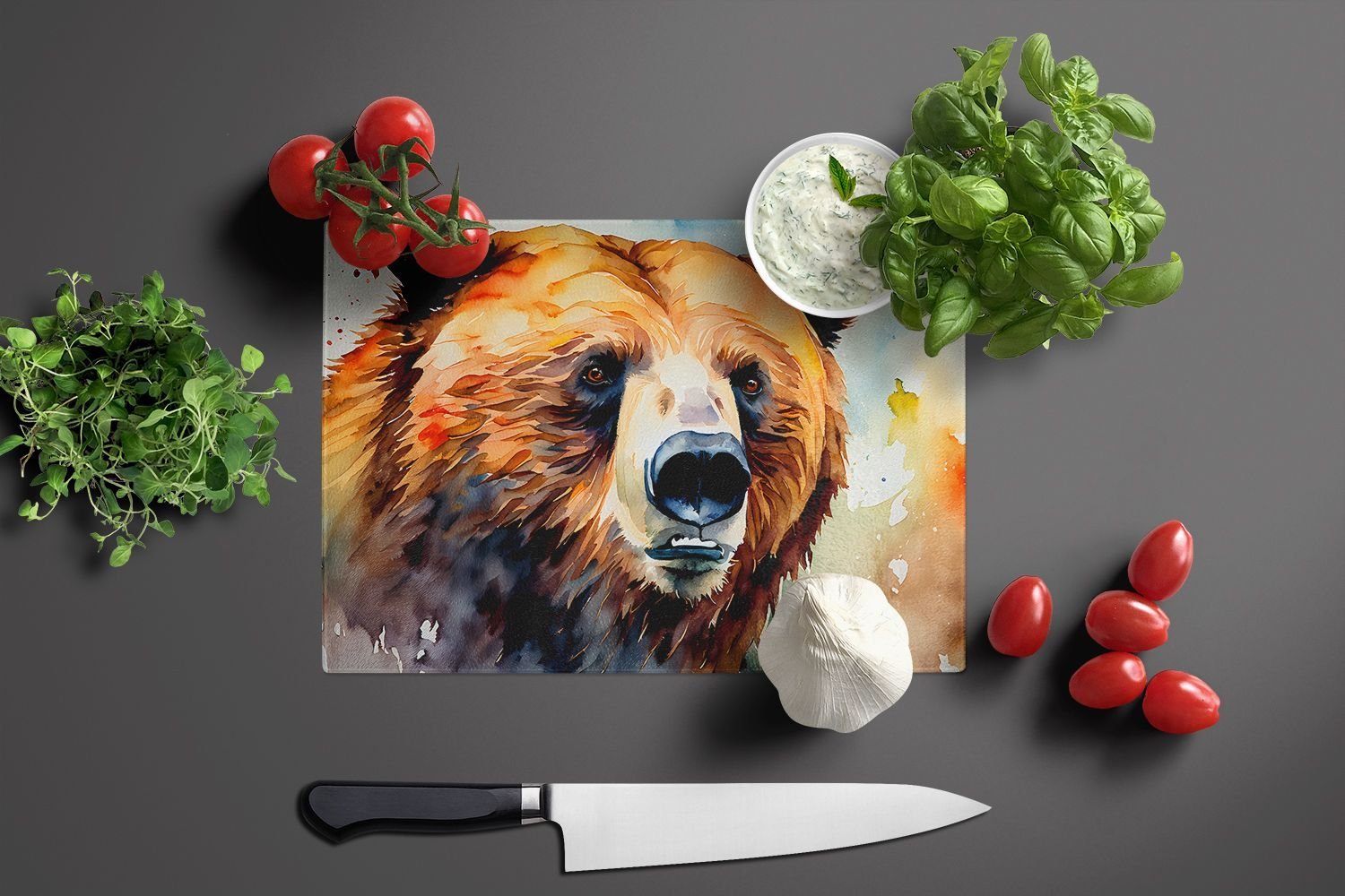 Glass Cutting Board featuring breed specific Grizzly Bear artwork. Introduce your kitchen to the vibrant, large Decorative Glass Cutting Board from Caroline's Treasures. Crafted from resilient tempered glass, this board is not only a utilitarian necessity but also a colorful art piece. With its generous dimensions of 15 inches in height and 12 inches in length, it offers ample space for all your cutting needs. Every piece showcases captivating artwork from distinguished artists, bringing an aesthetic edge to your kitchen. Beyond its attractive design, this cutting board ensures your countertop stays pristine and unscathed, owing to its heat-resistant properties. Engineered with user convenience in mind, it features non-skid feet for stability, and rounded corners for additional safety. Its robust construction renders it virtually unbreakable, guaranteeing longevity. The board comes with protective feet bumpers, maintaining its position during use. This product is recommended to be hand washed only. Proudly printed and assembled in the United States, this cutting board exemplifies superior craftsmanship. With Caroline's Treasures' Decorative Glass Cutting Board, you're investing in a blend of functionality and artistic flair.