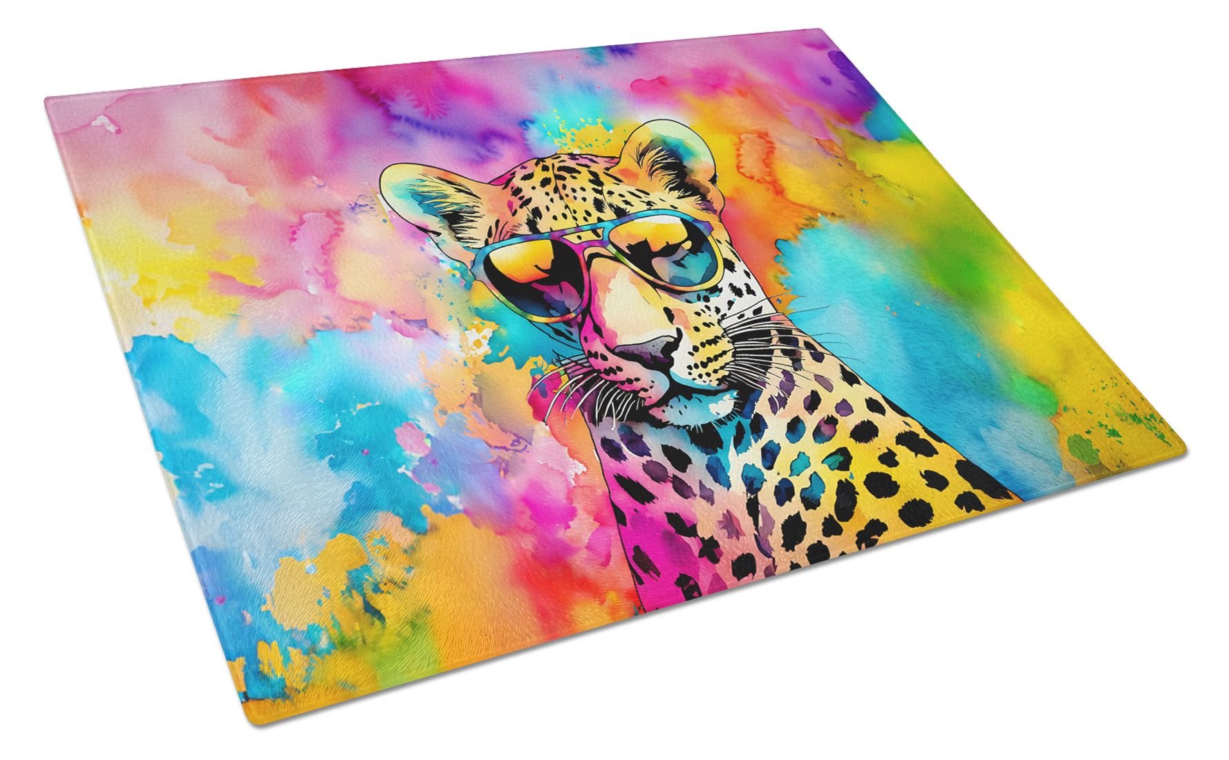 Glass Cutting Board featuring breed specific Leopard artwork. Introduce your kitchen to the vibrant, large Decorative Glass Cutting Board from Caroline's Treasures. Crafted from resilient tempered glass, this board is not only a utilitarian necessity but also a colorful art piece. With its generous dimensions of 15 inches in height and 12 inches in length, it offers ample space for all your cutting needs. Every piece showcases captivating artwork from distinguished artists, bringing an aesthetic edge to your kitchen. Beyond its attractive design, this cutting board ensures your countertop stays pristine and unscathed, owing to its heat-resistant properties. Engineered with user convenience in mind, it features non-skid feet for stability, and rounded corners for additional safety. Its robust construction renders it virtually unbreakable, guaranteeing longevity. The board comes with protective feet bumpers, maintaining its position during use. This product is recommended to be hand washed only. Proudly printed and assembled in the United States, this cutting board exemplifies superior craftsmanship. With Caroline's Treasures' Decorative Glass Cutting Board, you're investing in a blend of functionality and artistic flair.