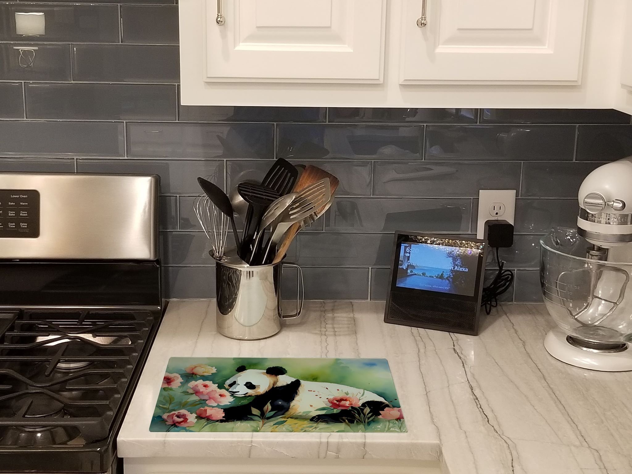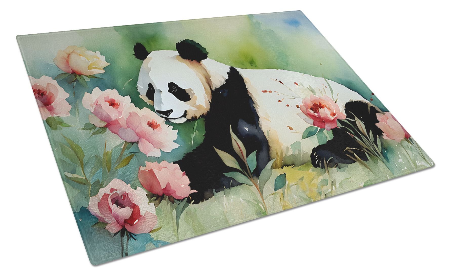 Glass Cutting Board featuring breed specific Panda artwork. Introduce your kitchen to the vibrant, large Decorative Glass Cutting Board from Caroline's Treasures. Crafted from resilient tempered glass, this board is not only a utilitarian necessity but also a colorful art piece. With its generous dimensions of 15 inches in height and 12 inches in length, it offers ample space for all your cutting needs. Every piece showcases captivating artwork from distinguished artists, bringing an aesthetic edge to your kitchen. Beyond its attractive design, this cutting board ensures your countertop stays pristine and unscathed, owing to its heat-resistant properties. Engineered with user convenience in mind, it features non-skid feet for stability, and rounded corners for additional safety. Its robust construction renders it virtually unbreakable, guaranteeing longevity. The board comes with protective feet bumpers, maintaining its position during use. This product is recommended to be hand washed only. Proudly printed and assembled in the United States, this cutting board exemplifies superior craftsmanship. With Caroline's Treasures' Decorative Glass Cutting Board, you're investing in a blend of functionality and artistic flair.