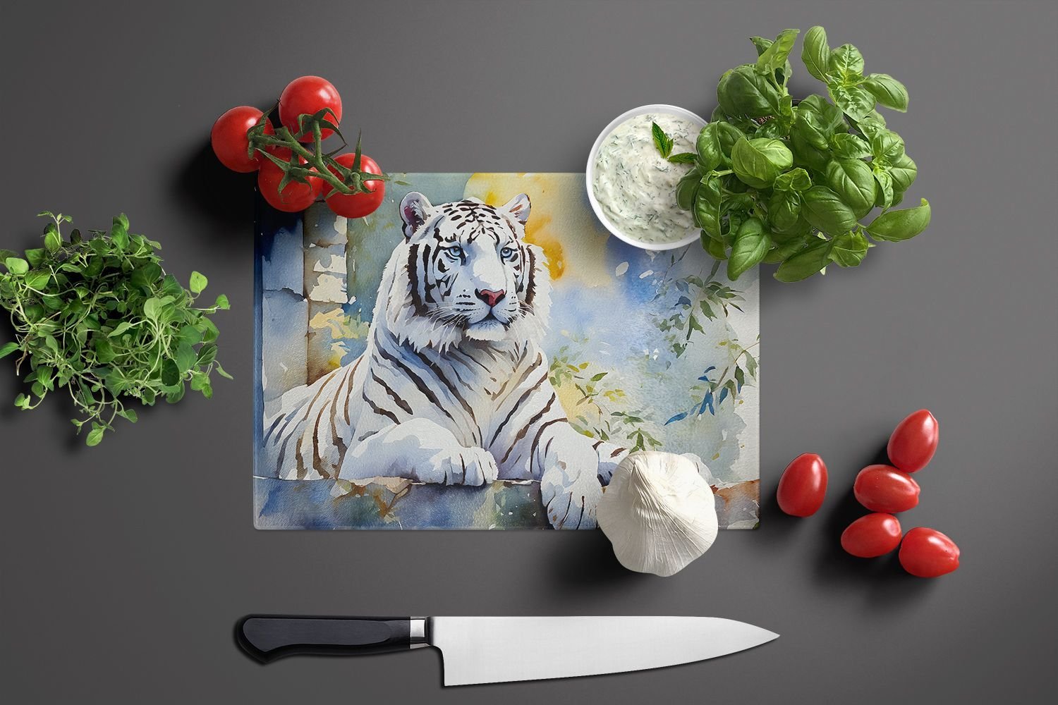 Home > NEW White Tiger Glass Cutting Board Decorative Tempered Glass Kitchen Cutting and Serving Board Large Size Chopping Board