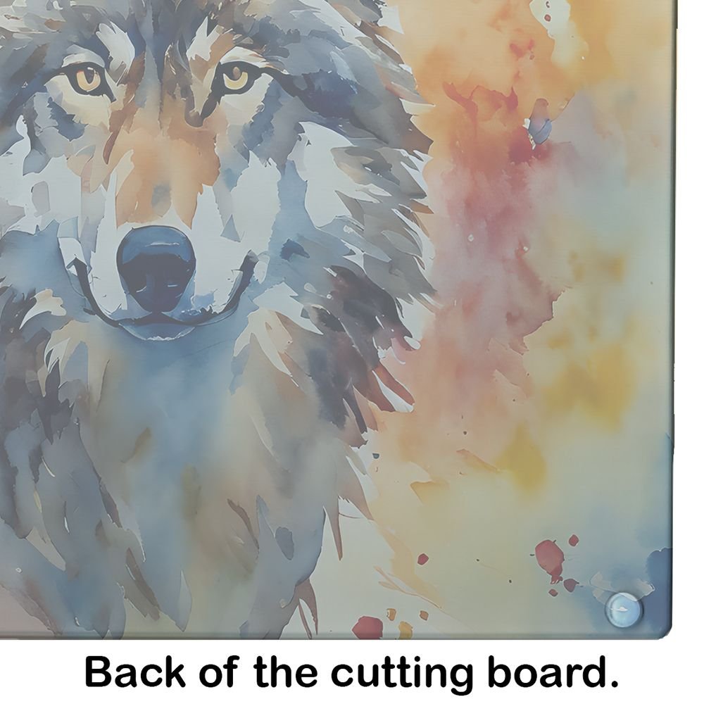Glass Cutting Board featuring breed specific Wolves artwork. Introduce your kitchen to the vibrant, large Decorative Glass Cutting Board from Caroline's Treasures. Crafted from resilient tempered glass, this board is not only a utilitarian necessity but also a colorful art piece. With its generous dimensions of 15 inches in height and 12 inches in length, it offers ample space for all your cutting needs. Every piece showcases captivating artwork from distinguished artists, bringing an aesthetic edge to your kitchen. Beyond its attractive design, this cutting board ensures your countertop stays pristine and unscathed, owing to its heat-resistant properties. Engineered with user convenience in mind, it features non-skid feet for stability, and rounded corners for additional safety. Its robust construction renders it virtually unbreakable, guaranteeing longevity. The board comes with protective feet bumpers, maintaining its position during use. This product is recommended to be hand washed only. Proudly printed and assembled in the United States, this cutting board exemplifies superior craftsmanship. With Caroline's Treasures' Decorative Glass Cutting Board, you're investing in a blend of functionality and artistic flair.