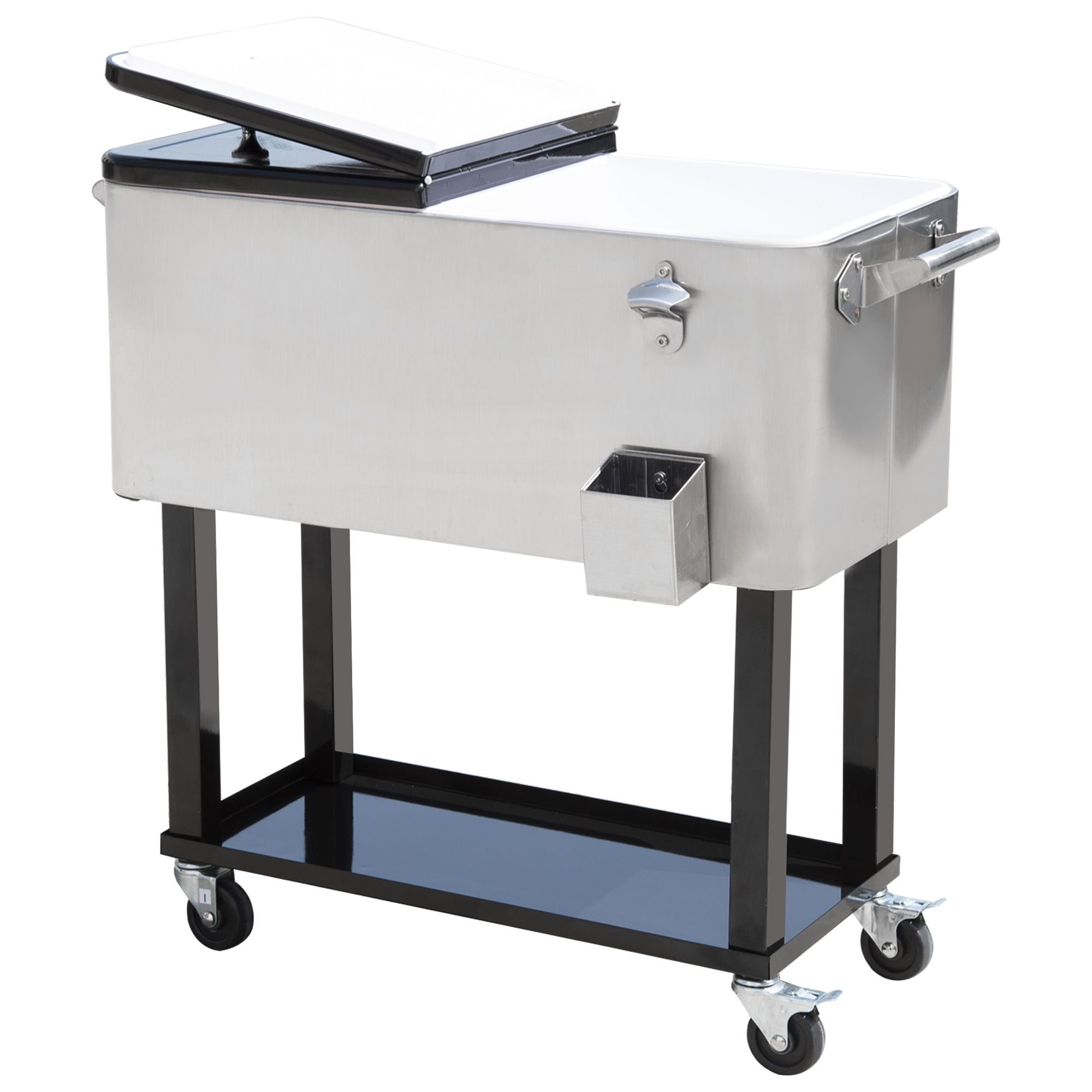 Home > Outsunny 80 QT Rolling Cooling Bins Ice Chest on Wheels Outdoor Stand Up Drink Cooler Cart for Party, Silver