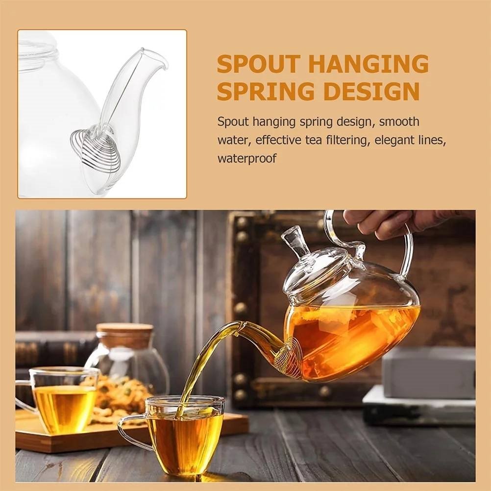 • 13.5oz/400 ml Glass Teapot with Removeable Metal Spout Hanging Spring