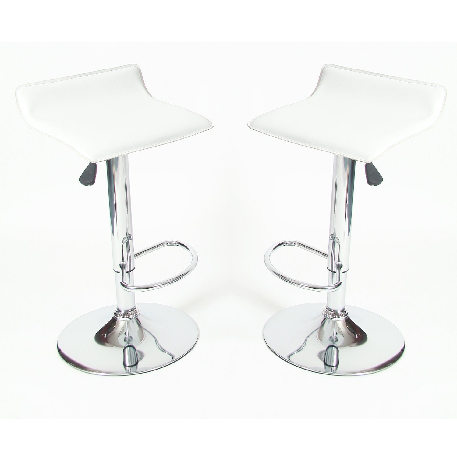 Set of 2 - Modern Chrome Air Lift Swivel Bar Stool with White Seat Set of 2 - Modern Chrome Air Lift Swivel Bar Stool with White Seat