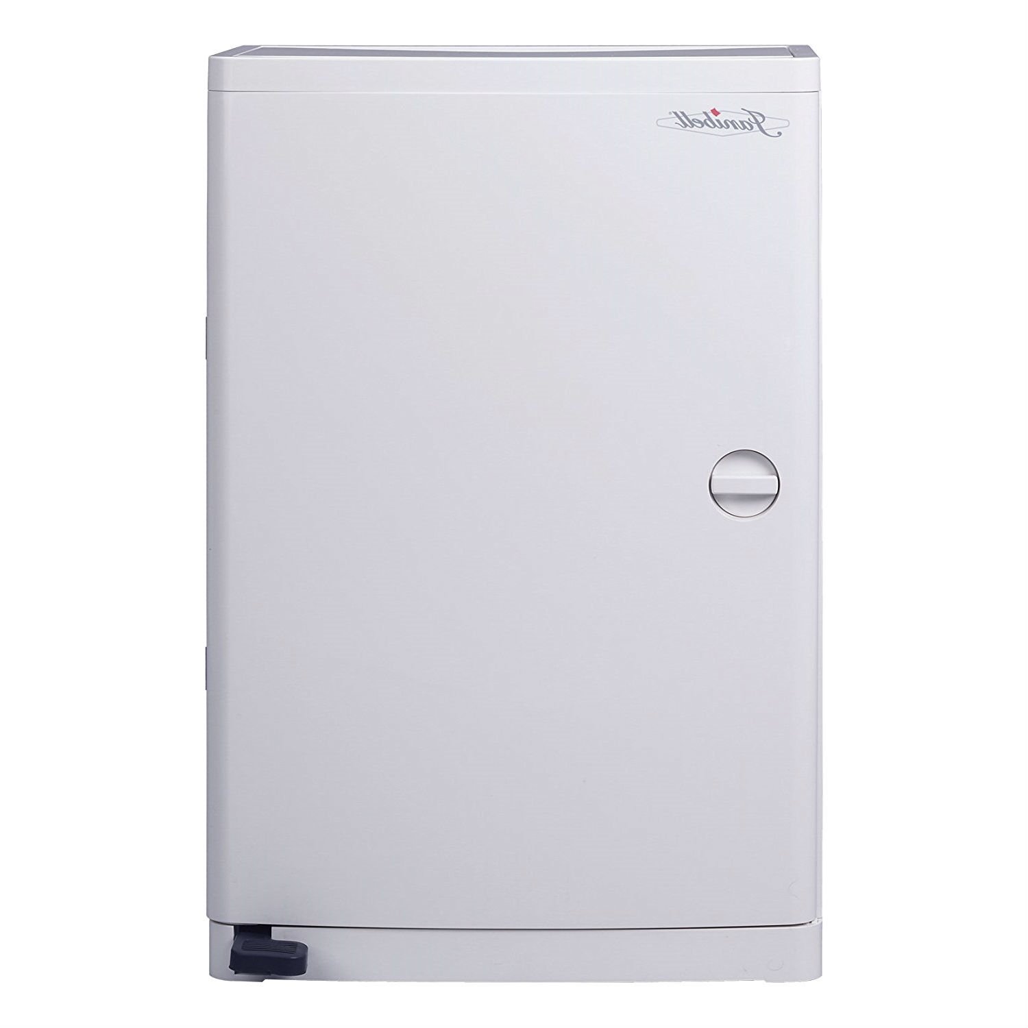This No Hands 18-Gallon Kitchen Trash Can in White with Food Pedal Lid is a sturdy, extra large 18 gallon capacity unit with a clean profile, works well in busy area where there is heavy volume. Daily trash removal is quick, easy and never wastes liner material. Ideal use for commercial offices, hospitals, labs, dentist's office, hamper in locker room.