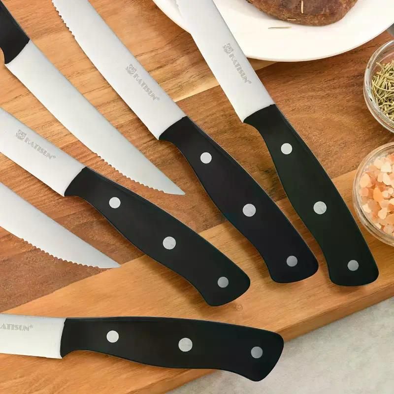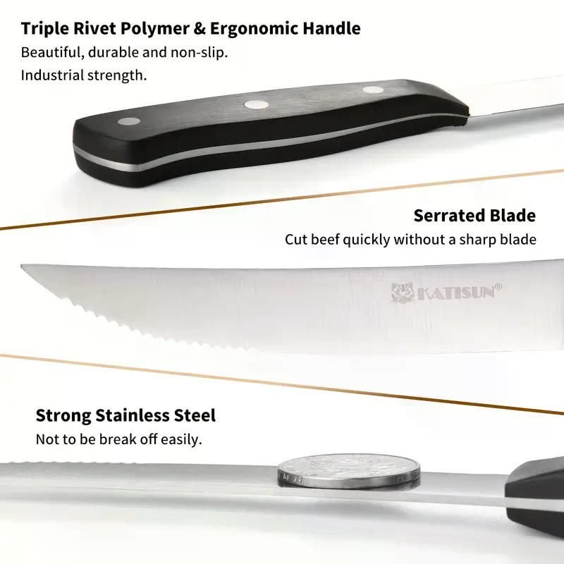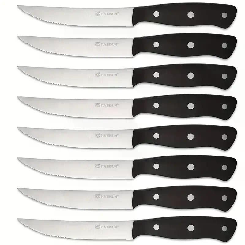 Steak Knives Set of 8, Serrated Steak Knives with POM Three Rivets Handle, Dishwasher Safe, for Family, Party, and Restuarant