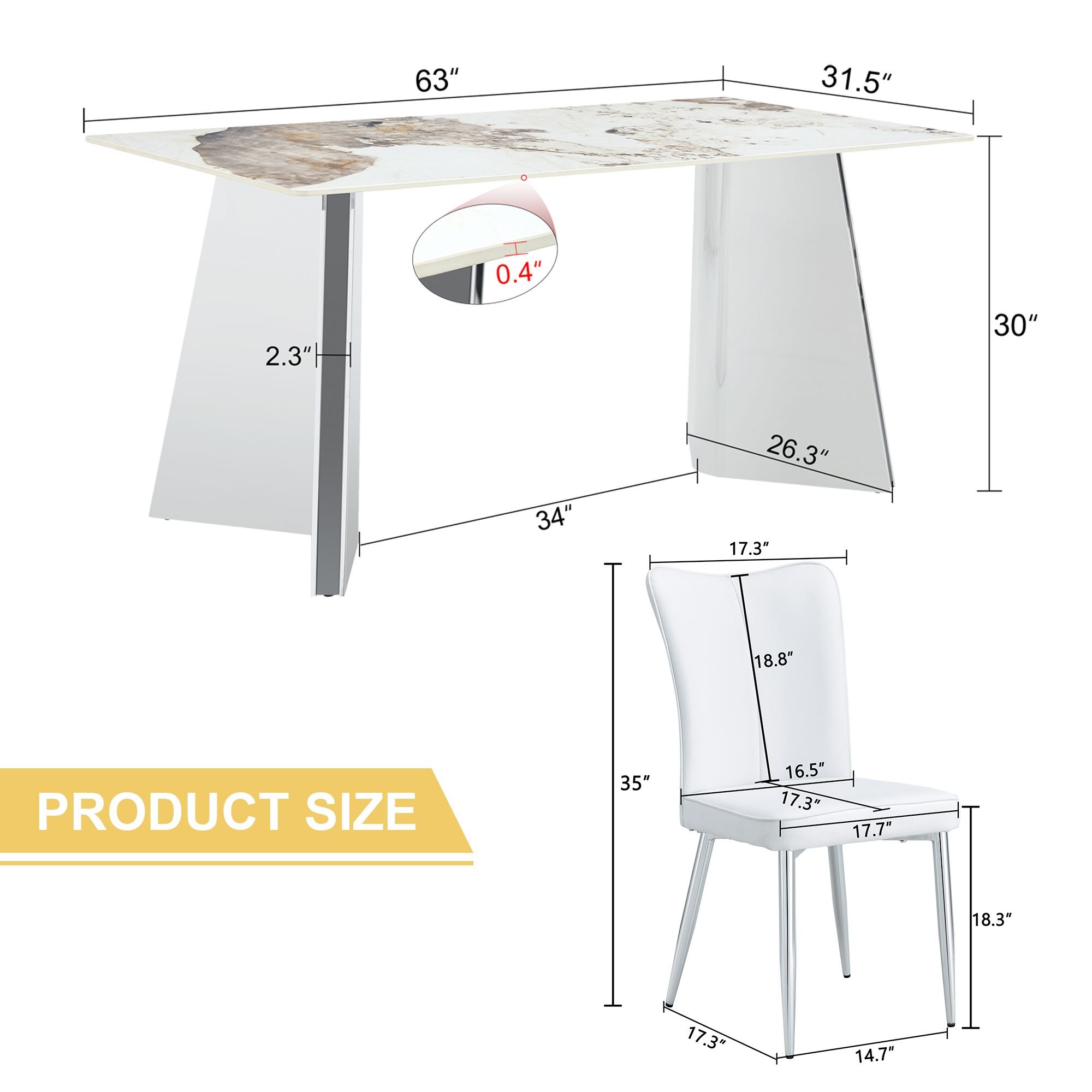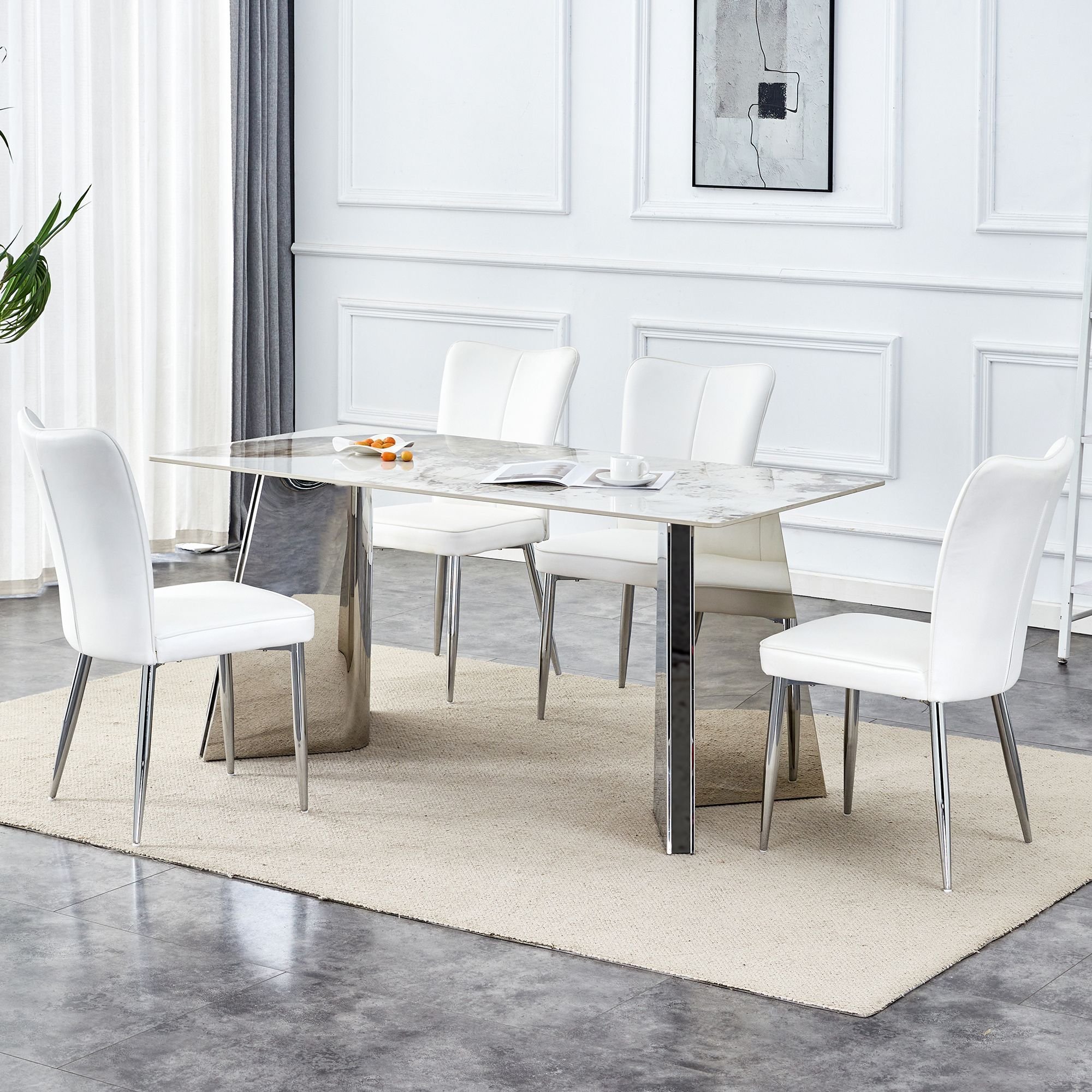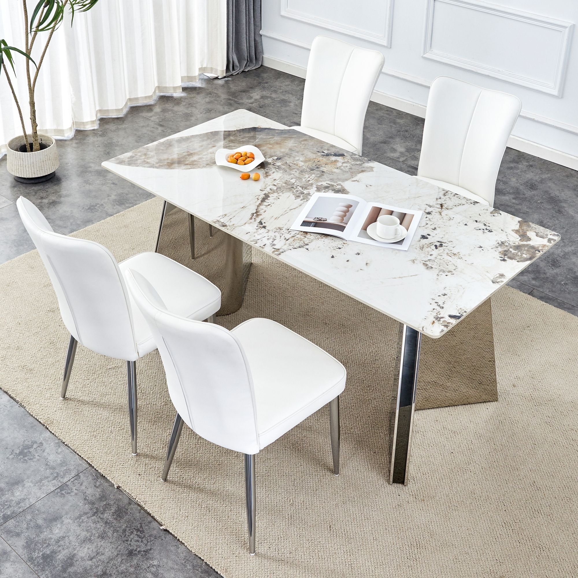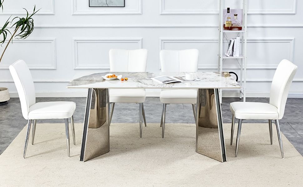 Stainless Steel Butterfly Legs: Unique stainless steel silver legs are designed to resemble butterfly wings, adding a modern artistic touch.Stable Support: The stainless steel legs provide stable support to ensure the stability of the dining table during use.