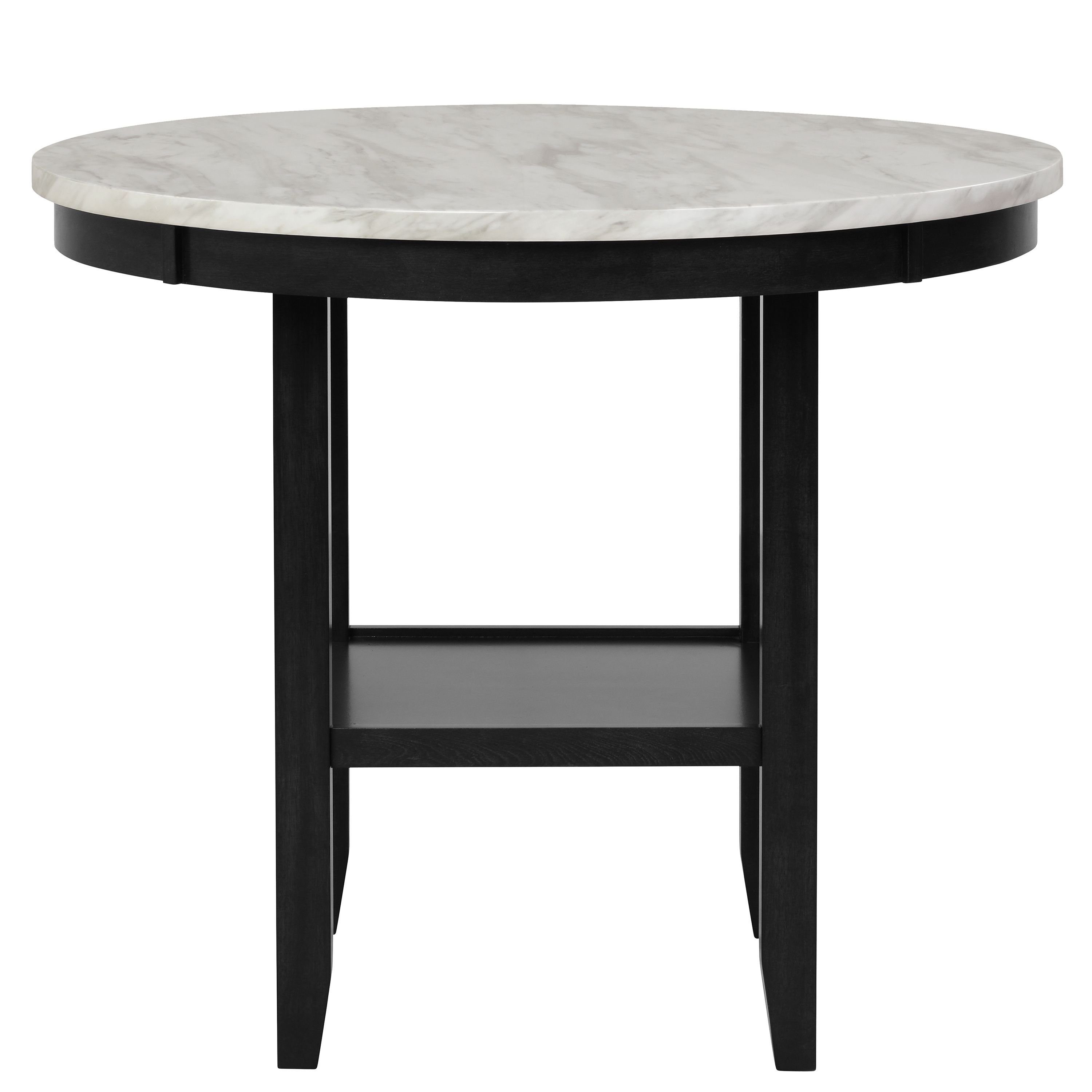 Transitional 5pc Round Counter Height Dining Table Set White Faux Marble Upholstered Black Fabric Dining Room Wooden Furniture