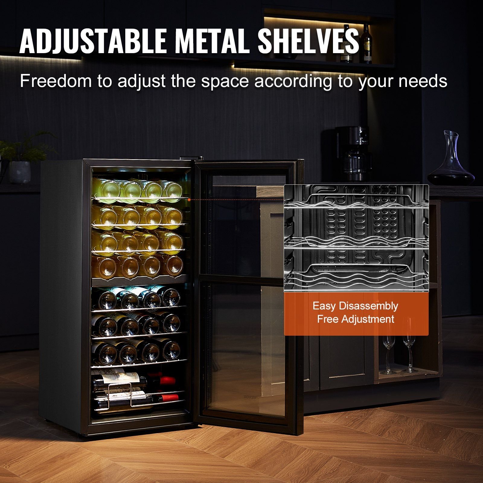 1.32-Bottle Capacity: The VEVOR freestanding wine cooler holds up to 32 bottles of 750ml wine. Whether you're a wine enthusiast or collector, this cooler provides ample space to showcase and age your favorite wines.