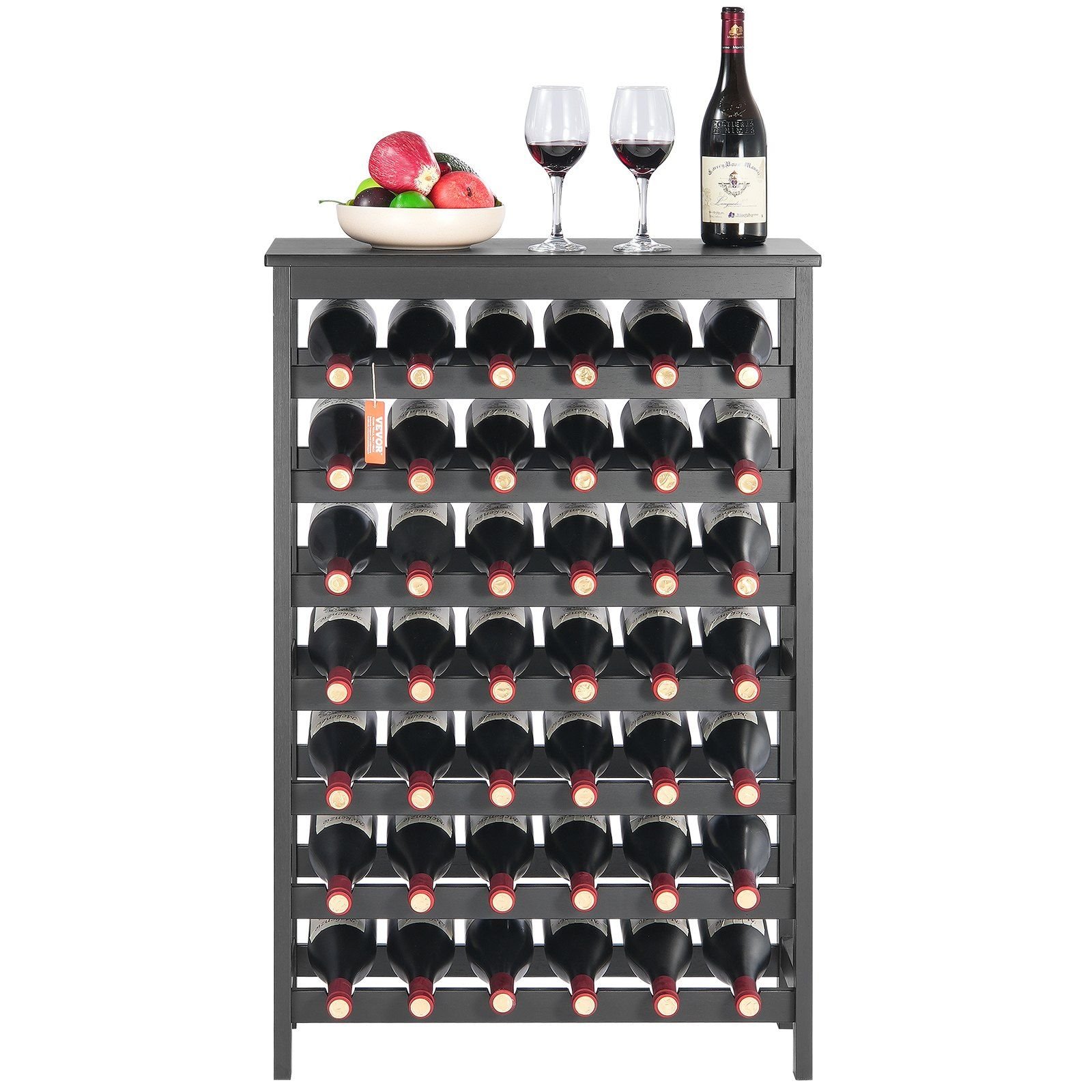 Our freestanding wine rack ighly versatile and fits any space, whether it is a kitchen, dining room, or wine cellar. It also makes a great gift for wine enthusiasts and collectors. Please note, wine is not included.