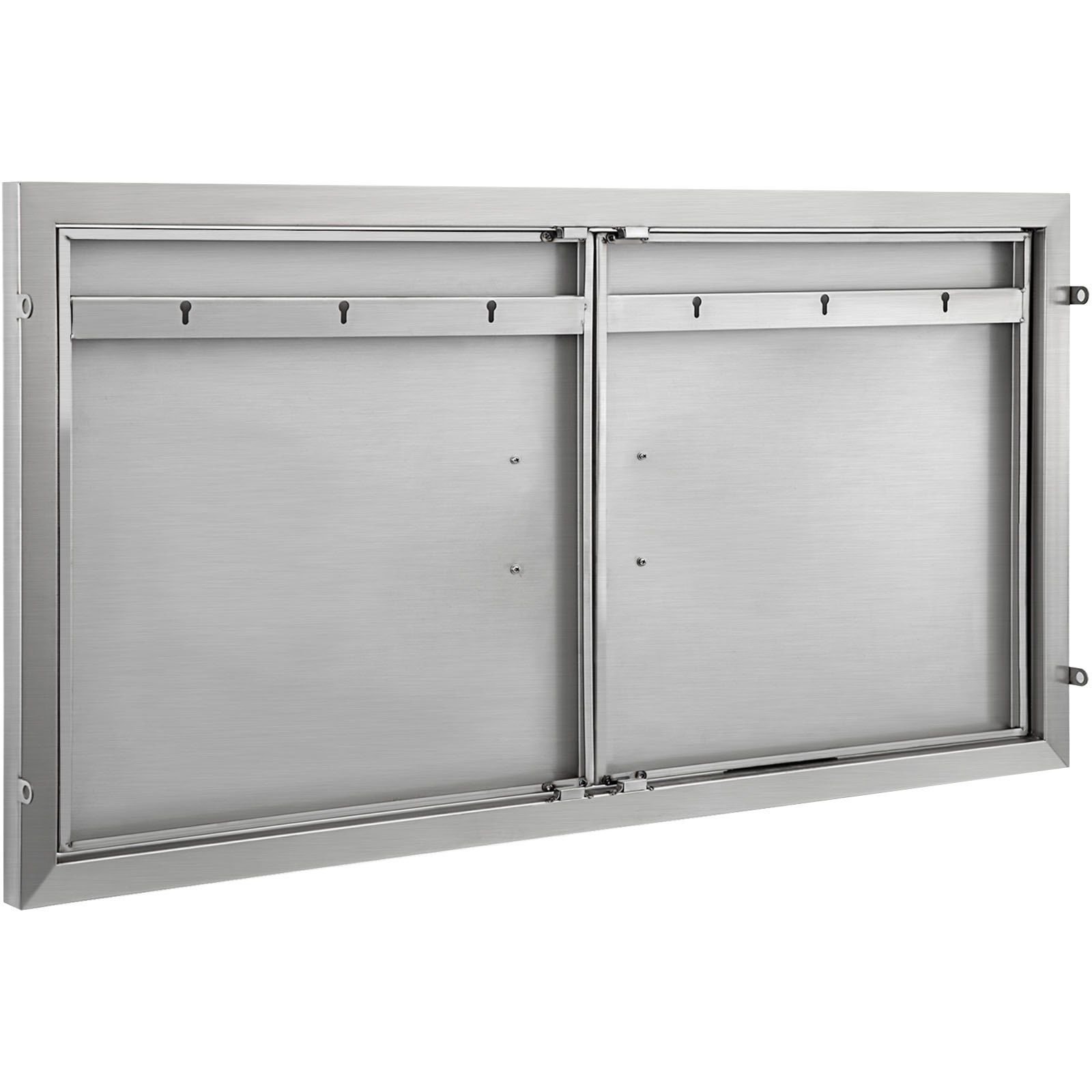 1.Durable Construction: Overall Dimensions (W x H): 36" x 21"/91.5 x 53.6 cm; Cutout Dimensions (W x H): 36" x 21"/91.5 x 53.6 cm. The outdoor kitchen doors, constructed with stainless steel, feature corrosion and abrasion resistance. The brushed surface makes the door appealing, and it is easy to clean with no marks or smudges left. All seamless design and no sharp corners safeguard users' security.