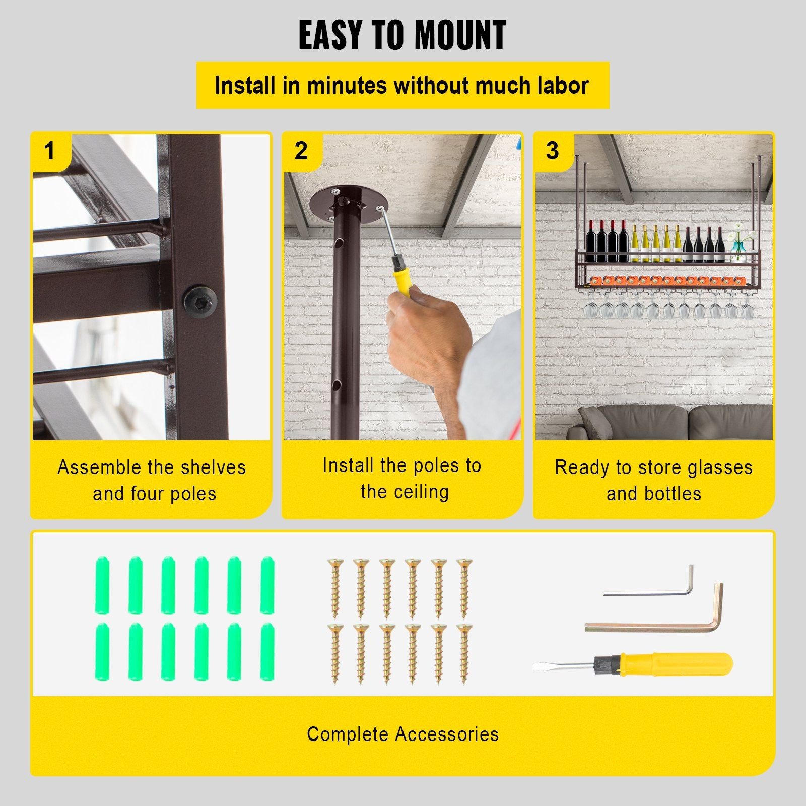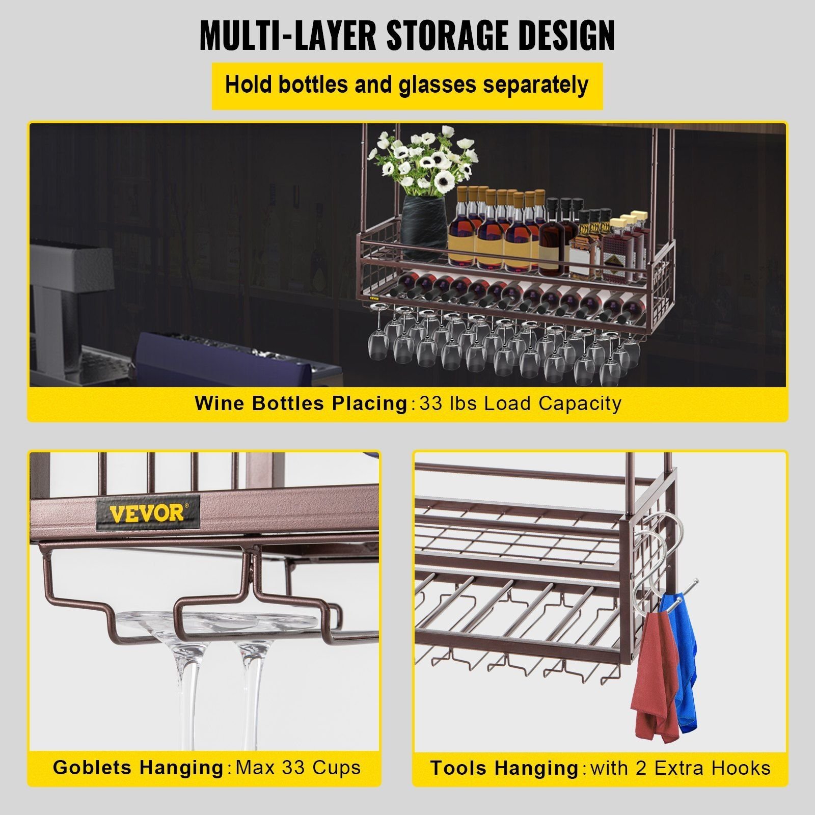 Home > VEVOR Ceiling Wine Glass Rack, 46.9 x 11.8 inch Hanging Wine Glass Rack, 18.9-35.8 inch Height Adjustable Hanging Wine Rack Cabinet