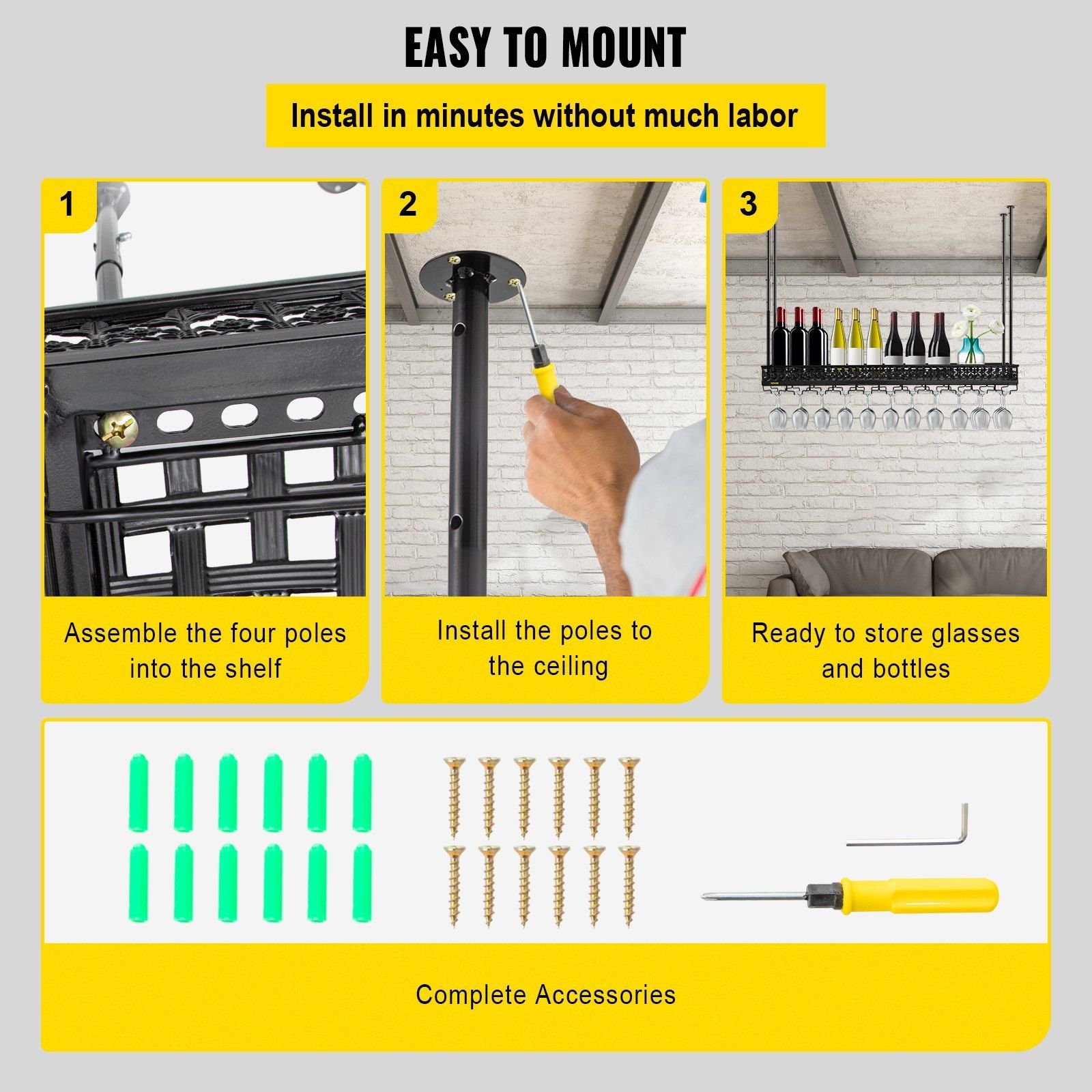 Home > VEVOR Ceiling Wine Glass Rack, 46.9 x 13 inch Hanging Wine Glass Rack, 18.9-35.8 inch Height Adjustable Hanging Wine Rack Cabinet