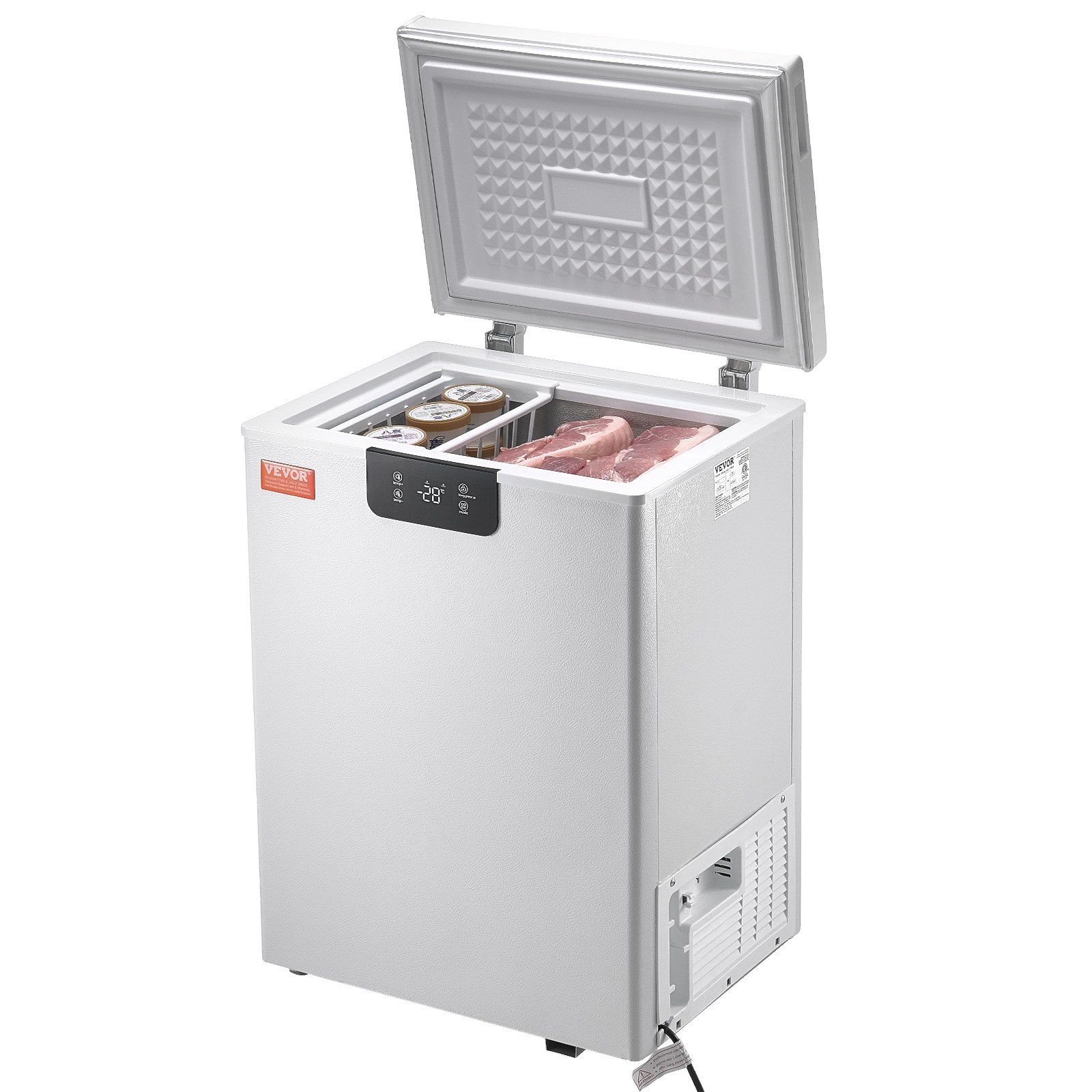 With 2.22 cu.ft capacity and 2 removable baskets, VEVOR chest freezer is perfect for storing everything from turkeys to pizzas and smaller items, ensuring ingredients stay fresh and cold for longer. Compact and space-saving, it offers extra storage for frozen goods while occupying minimal space.