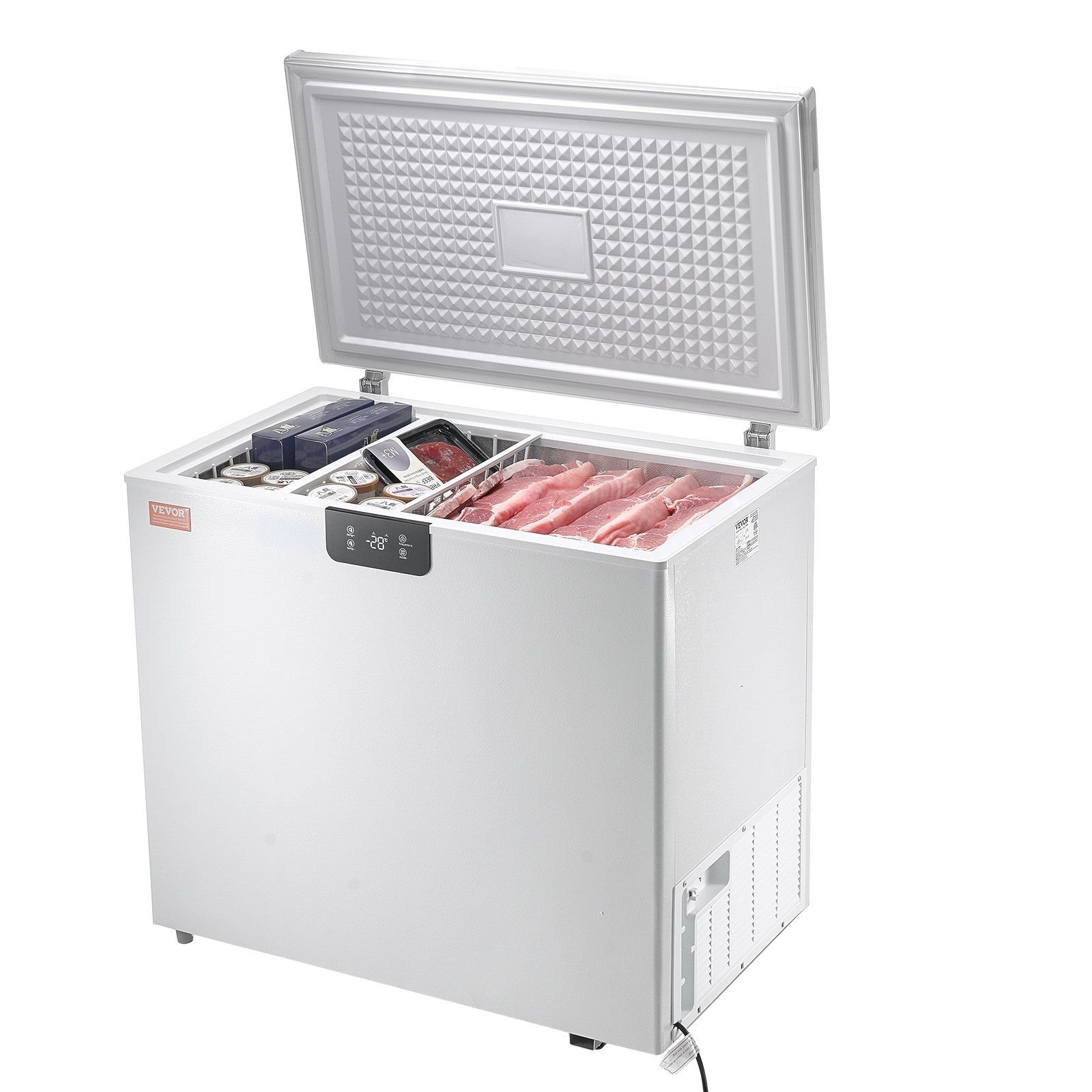 With 7 cu.ft capacity and 2 removable baskets, VEVOR chest freezer is perfect for storing everything from turkeys to pizzas and smaller items, ensuring ingredients stay fresh and cold for longer. Compact and space-saving, it offers extra storage for frozen goods while occupying minimal space.