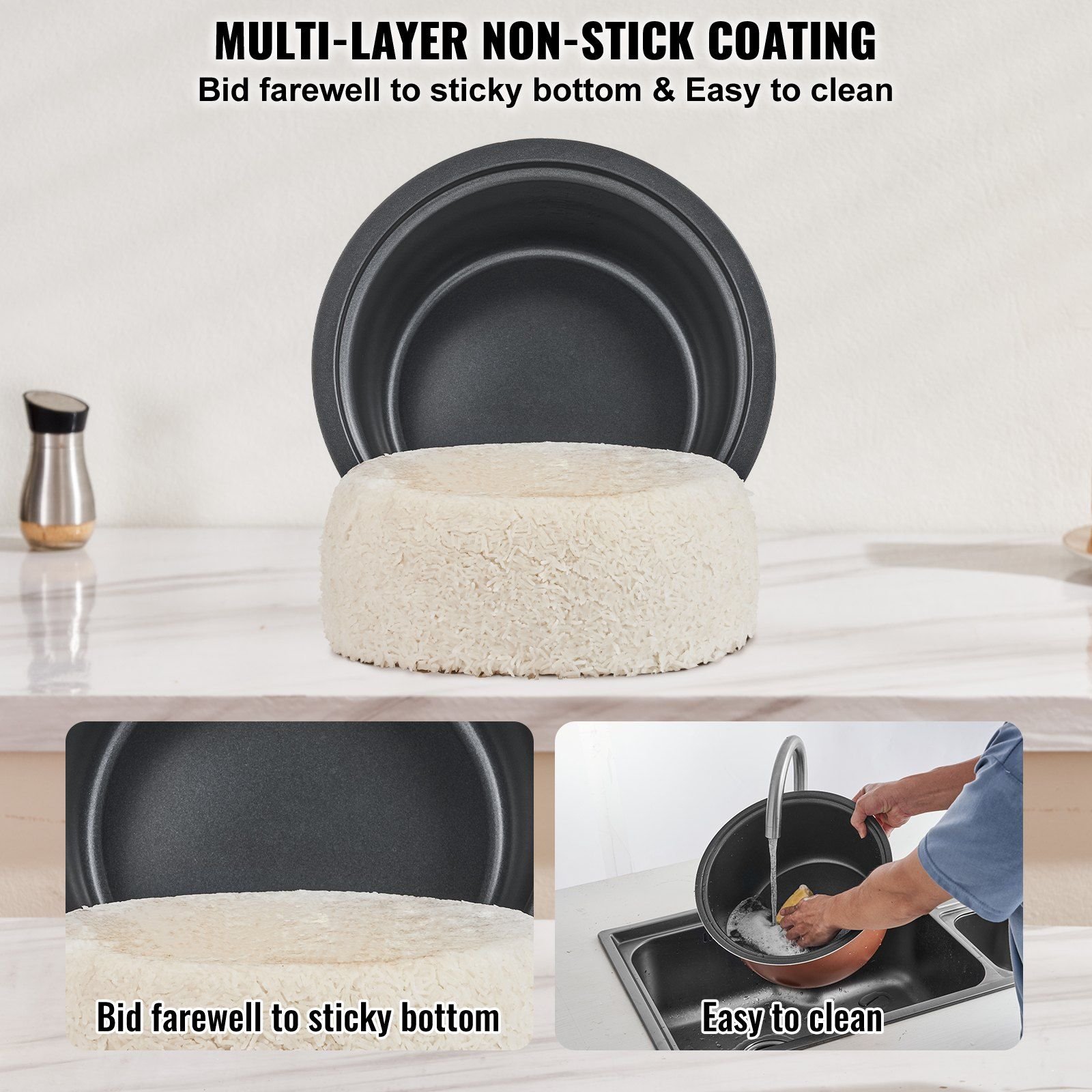 4.High-Quality Non-Stick Inner Pot: The non-stick inner pot and streamlined design make cleaning effortless. The non-stick surface prevents rice from sticking together, ensuring delicious and fluffy grains every time.